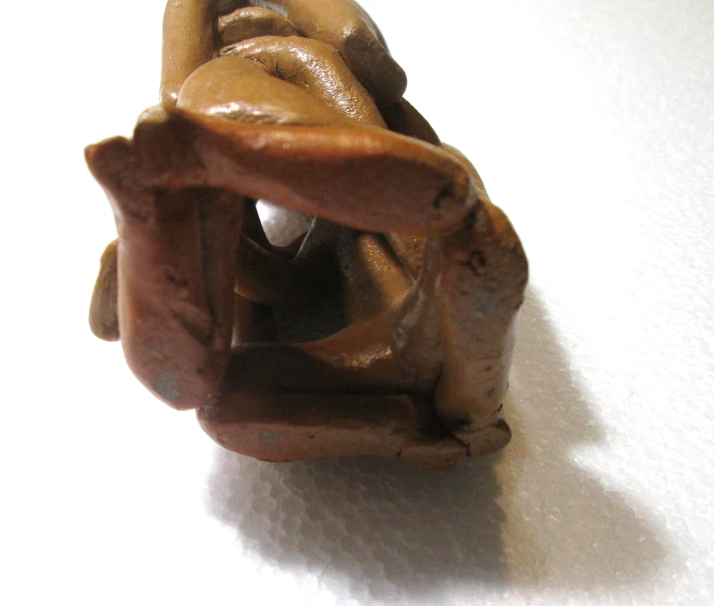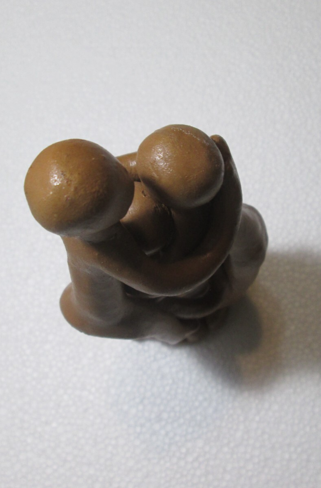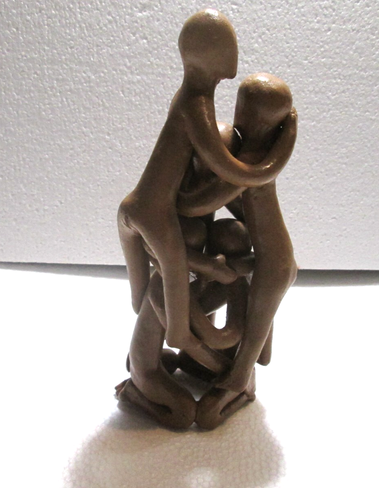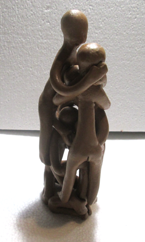 Abstract Sculpture MCM Folk Art Terra Cotta Clay People Family Statue. Very nice condition, see photos. Stands about 6 1/2 inches tall.