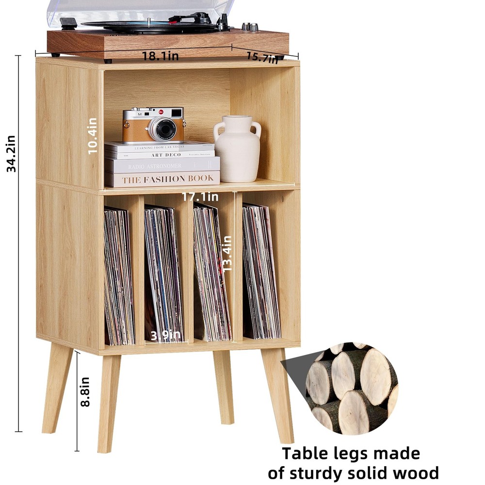 This record player stand a full wooden structure and is paired with an all-brown design, showcasing a retro texture. We use high-quality solid wood material for the table legs to make its supporting structure more robust. It can accommodate up to 100 lbs &180 records.The record player table can also function as a bedside table, bookshelf, or even a file cabinet. You can use it according to your needs. Specification: Color: Burlywood Size: 18.1 "L x 15.7" W x34.2 "H Weight: 100 pounds Application scenarios: Living room, Bedroom, Home, Office Package includes : 1 x Record Player Stand 1 x Installing Toolkit 1 x Instructions 【Huge Record Player Stand】This sturdy record stand adopts a full wooden structure and is designed in all walnut, giving it a superior appearance and texture. The size of the natural record player table is 18.1'' L x 15.7'' W x 34.2'' H, which can fully accommodate 100 lbs & 160 records.We strive to provide customers with a comfortable user experience while creating large-capacity turntable stand. 【Sturdy Angled Solid Wood Legs】We choose high-quality solid wood materials to make the slanted table legs.The solid wood table legs make the structure of the record player storage more sturdy, while creating a superior texture.The inside of the bold slanting table legs is reinforced with special screws.The sturdy support structure of the record cabinet makes it fearless of the test of time, and it precipitates a unique and calm atmosphere as time passes by. 【Elevated Display Space】We have designed the middle area of the large vinyl record storage to be 10.4'', which allows you to freely place audio equipments and decorations.The perfect height of this cabinet is designed according to the height of the human body, which is in line with your operational flow. The circular line holes on the back panel of the turntable stand makes it convenient for you to connect music devices. Let's start a wonderful music appreciation party together! 【Suitable for Multiple Scenarios】The Burlywood texture of the vinyl player stand highlights a calm and retro atmosphere. A retro appearance combined with modern functions, perfectly integrated into various styles of home decor. You can place it in the living room, bedroom, music room, or office to let music flow through your life. The record player shelf can also serve as a bedside table, bookshelf or even a file cabinet. More usage possibilities are waiting for you to unlock. 【Easy Assembly & Thoughtful Packaging】This Vinyl record holder comes with an easy-to-read installation manual and all labeled tool parts, making it easy for you to complete the installation. We have specially designed the packaging with thick foam, sturdy edges and double layers to ensure the retro vinyl player stand is delivered perfectly to your hands.