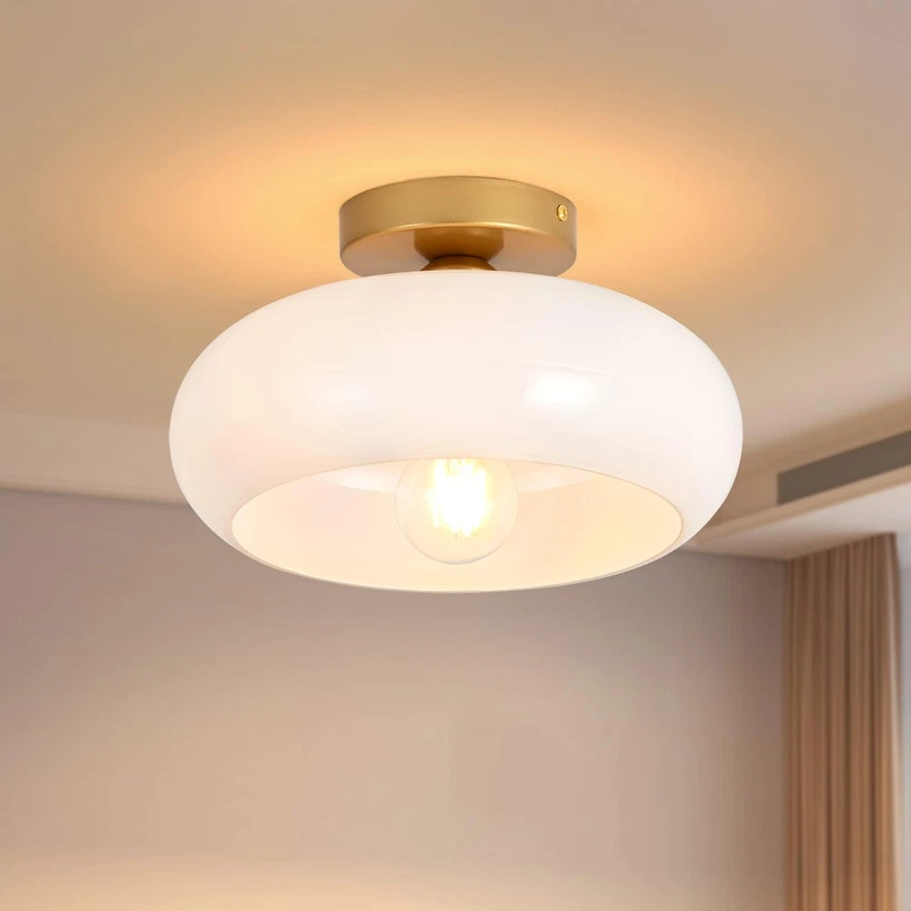 Store New Arrivals Add to Favorite View Feedback Contact Mid-Century Modern Gold Semi Flush Mount Ceiling Light, Kitchen Ceiling Light Fixture with Glass Shade, Vintage White Close to Ceiling Lamp for Entryway Hallway Bathroom (8.66 Inch) Description Item model number Ceiling Lamp Light Source Type LED, Incandescent ,Halogen Style Mid-Century Modern Number of Items 1 Power Source AC Fixture Type Non Removable Number of Light Sources 1 Control Method Touch Embellishment Hallway Light Fixtures Ceiling Theme Modern Flush Mount Ceiling Light Batteries Included? No Lighting Method Downlight Specification Met High Quality Controller Type Push Button Unit Count 1.0 Count Room Type Kids Room, Entryway,Home, Offices , Coffee Shop, Laundry Room, Bathroom, Kitchen, Bedroom Assembly Required No Switch Type Not included Product Dimensions 6.1"L x 8.66"W x 8.66"H Material Glass, Iron, Metal Installation Type Semi Flush Mount Model Name Mid Century Ceiling Light Finish Type Lacquered Specific Uses For Product Indoor use only Indoor/Outdoor Usage Indoor Bulb Base E26 Country of Origin China Water Resistance Level Not Water Resistant Batteries Required? No Warranty Type Limited Item Weight 2.33 pounds Light fixture form Close to Ceiling Special Features Energy Efficient, Dimmable, Anti-Rust Special Feature Energy Efficient, Dimmable, Anti-Rust Part Number Ceiling Light Shade Color White Mounting Type Ceiling Mount Color Gold Wattage 60 watts Shape Round Voltage 120 Volts Recommended Uses For Product Indoor Shade Material Glass Finish types Lacquered Included Components Shade Size 8.66 in Mid-Century Modern Design: This white semi flush mount ceiling light features a frosted glass shade and a brushed brass metal base. The open shade design makes it easier to clean and change bulbs Dimensions: The glass shade measures 8.66 inches in both length and width. This compact and elegant ceiling light is ideal for areas ranging from 20 to 50 square feet Applications: Perfect for bedrooms, entryways, bathrooms, kitchens, hallways, and more E26 Bulb: Thissemi flush mount ceiling light is compatible with E26 bulbs, with a maximum wattage of 60W. It works with LED, halogen, CFL, or incandescent bulbs, though bulbs are not included Dimmable: The hallway lighting fixtures ceiling is dimmable when used with compatible dimmable bulbs and a compatible dimmer switch, bulbs and switch not included Product Description Woknos Mid-Century Modern Semi Flush Mount Ceiling Light fixture Woknos Lighting, Making Every Home a Desirable Place to Live in. Milky White Glass Shade This entryway light fixture features a thick and sturdy glass shade which appears to be of high quality. The white glass shades the glaring lighting creating a great softened and warm look to your home while protecting your eyes. Sturdy and Stable Canopy The metal base is sturdy, rust-resistant, and rated for damp areas. The semi-flush mount ceiling light is e-coated with a detailed brushed brass finish on the canopy and fixture body, paired with the white glass for a luxe look. Standard E26 Socket This mid-century modern ceiling hanging lamp is suitable for standard E26 sockets such as LED and incandescent bulbs, you can choose different color temperature bulbs and create various atmospheres. Bathroom light fixtures ceiling mount Its elegant round shape and classy brass finish give it a modern yet classic appearance, which makes it a perfect addition to various settings, including living room, bedroom, bathroom, entryway, foyer, hallway balcony, and more. kitchen light fixtures & Bathroom semi flush mount ceiling light &Entryway light Follow our instructions for a fast setup Gold hallway light fixtures About Light Bulbs Compatible with E26 bulbs including LED, Halogen, Fluorescent, or Incandescent bulb (Bulb Not Included). Tip: Please feel free to reach out if you have any problems with our products or the installation process, we will try our best to assist you! Turn on and Turn off Dimmable from 0% to 100% when used with a compatible dimmer(Not Included). Please reach out if you have problems with broken glass shade, don't worry, free of broken glass shade. Light Fixture Add to Cart Add to Cart Add to Cart Add to Cart Customer Reviews 4.4 out of 5 stars 71 4.3 out of 5 stars 128 4.3 out of 5 stars 128 — 5.0 out of 5 stars 1 — Price $39.89 $ 39 . 89 $59.49 $ 59 . 49 $63.99 $ 63 . 99 $65.99 $ 65 . 99 — — Number of Lights 1 1 1 1 1 6 Socket Type E26 LED LED E26 E26 E26 Light fixture form Close to Ceiling Close to Ceiling Close to Ceiling Close to Ceiling Close to Ceiling Chandelier Style Mid-Century Modern Modern Modern Farmhouse Farmhouse Industrial Color Gold & White White Grey Black Gold Black & Gold ABOUT US We offer the best prices around on high quality products. Our E-store includes media such as books, movies, music and games while offering electronics, toys, sporting apparel, clothing, tools, general home, garden items and more. SHIPPING We are always working hard to ensure your package arrives as soon as possible. Please understand that some factors like weather, high postal traffic, and the performance of shipping companies are outside of our control. We offer free shipping to the lower 48 states and ship within 2 business days of payment, usually sooner. We do not accept P.O. Boxes. Please provide a physical address. For shipping outside of the continental USA, we only use eBay's Global Shipping Program.The item is shipped to KY and then sent to the rest of the world. International customers are responsible for all duties and taxes. Continue to check out in order to calculate costs for shipping the item to your country. Messages regarding eBay's Global Shipping Program MUST be directed at eBay EXCLUSIVELY. RETURNS We offer a 30-Day Return Policy on items which you are not completely satisfied with. You have the option for a full-refund or an exchange of the item. No returns are available on items shipped outside of the USA. PAYMENT We accept