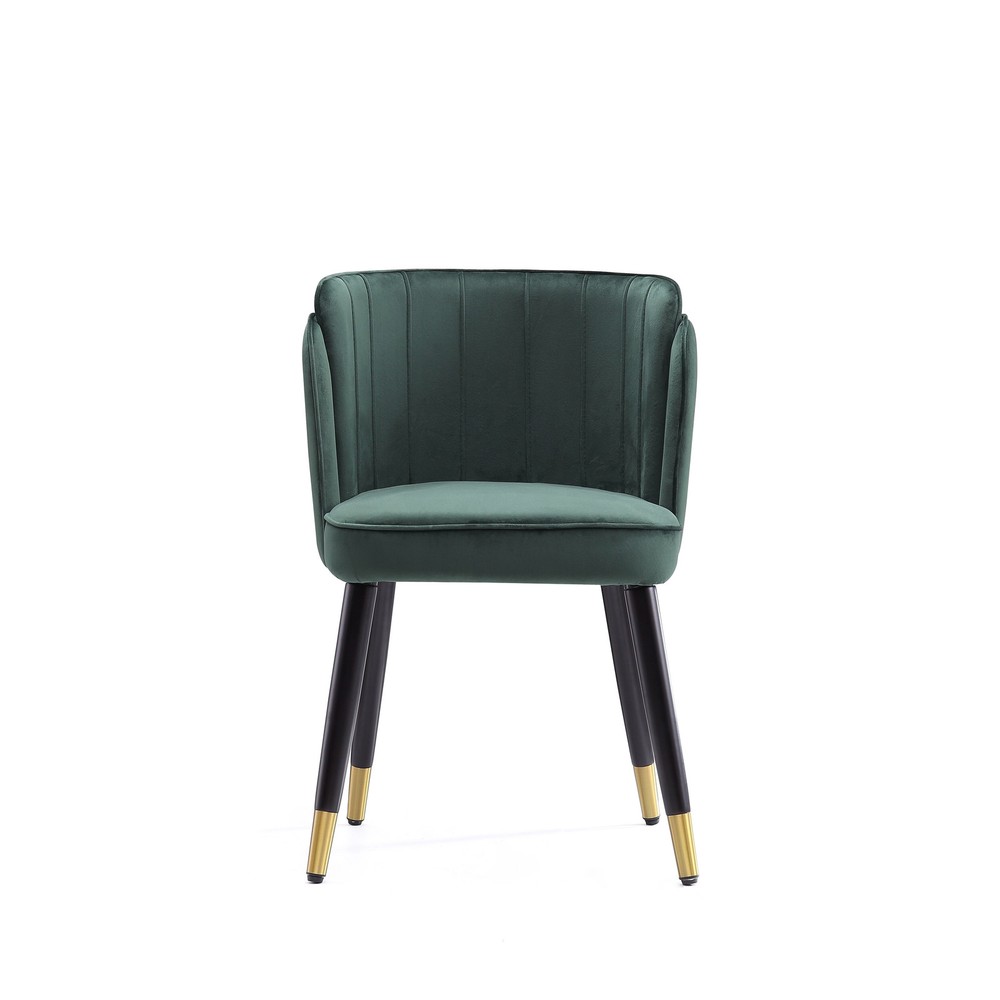 Complete your retro aesthetic with the detailed Zephyr chair. The rounded frame is upholstered with rich velvet and detailed with tufted stitching for timeless texture. Black lacquer and gold caps accent the solid wood legs for a final touch of mid-century charm.Features: Tapered, solid wood legs Velvet upholstery Mid-century modern style Cream, green, or dark blue color Gold-capped feet Black lacquer finish Rounded seat back Tufted detailing Assembled Measures 30.7 inches high x 21.26 inches wide x 21.65 inches deep Free Shipping Over $49.99* Details Ceets Zephyr Mid-century Modern Tufted Velvet Dining Chair Product Description: Complete your retro aesthetic with the detailed Zephyr chair. The rounded frame is upholstered with rich velvet and detailed with tufted stitching for timeless texture. Black lacquer and gold caps accent the solid wood legs for a final touch of mid-century charm. Features: Tapered, solid wood legs Velvet upholstery Mid-century modern style Cream, green, or dark blue color Gold-capped feet Black lacquer finish Rounded seat back Tufted detailing Assembled Measures 30.7 inches high x 21.26 inches wide x 21.65 inches deep