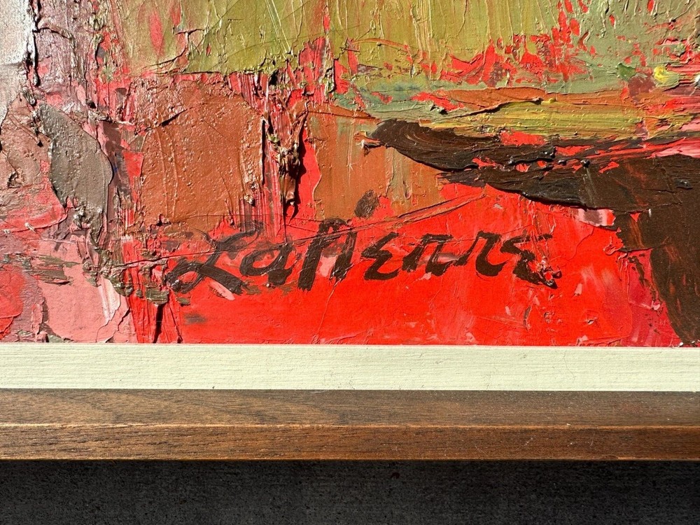 Stunning Abstract Landscape Oil Painting, Signed by Lanerre, Circa 1950s Description: Up for sale is a remarkable piece of art that not only captures the essence of abstract landscape interpretation but is also a testament to the rich artistic legacy of the 1950s. Details: Artist: Signed by the renowned artist Lanerre. Era: This piece hails from the iconic 1950s, a time of groundbreaking artistic experimentation and exploration. Origin: I had the privilege to acquire this painting at a trust sale held in a Mid-Century Modern home in the heart of Palo Alto, California. The setting itself pays tribute to the era from which this painting originates. Dimensions: 20 x 30 Condition: Good condition and beautifully framed Personal Note: Every painting tells a story, both of the artist and the person it resides with. I have cherished this painting since the moment it adorned my wall. The rich textures, the blend of colors, and the abstract interpretation of a landscape have been a constant source of admiration and contemplation. Parting with it is truly a challenging endeavor, but I am hopeful it will find a home where its beauty and depth will be equally appreciated.