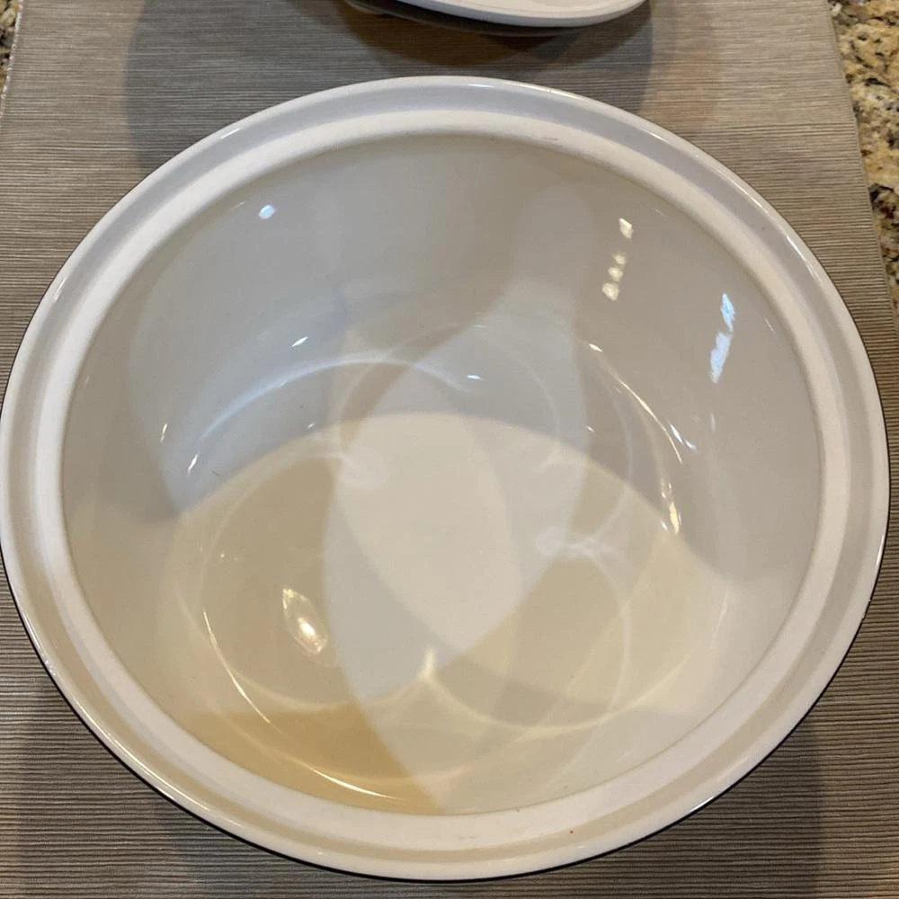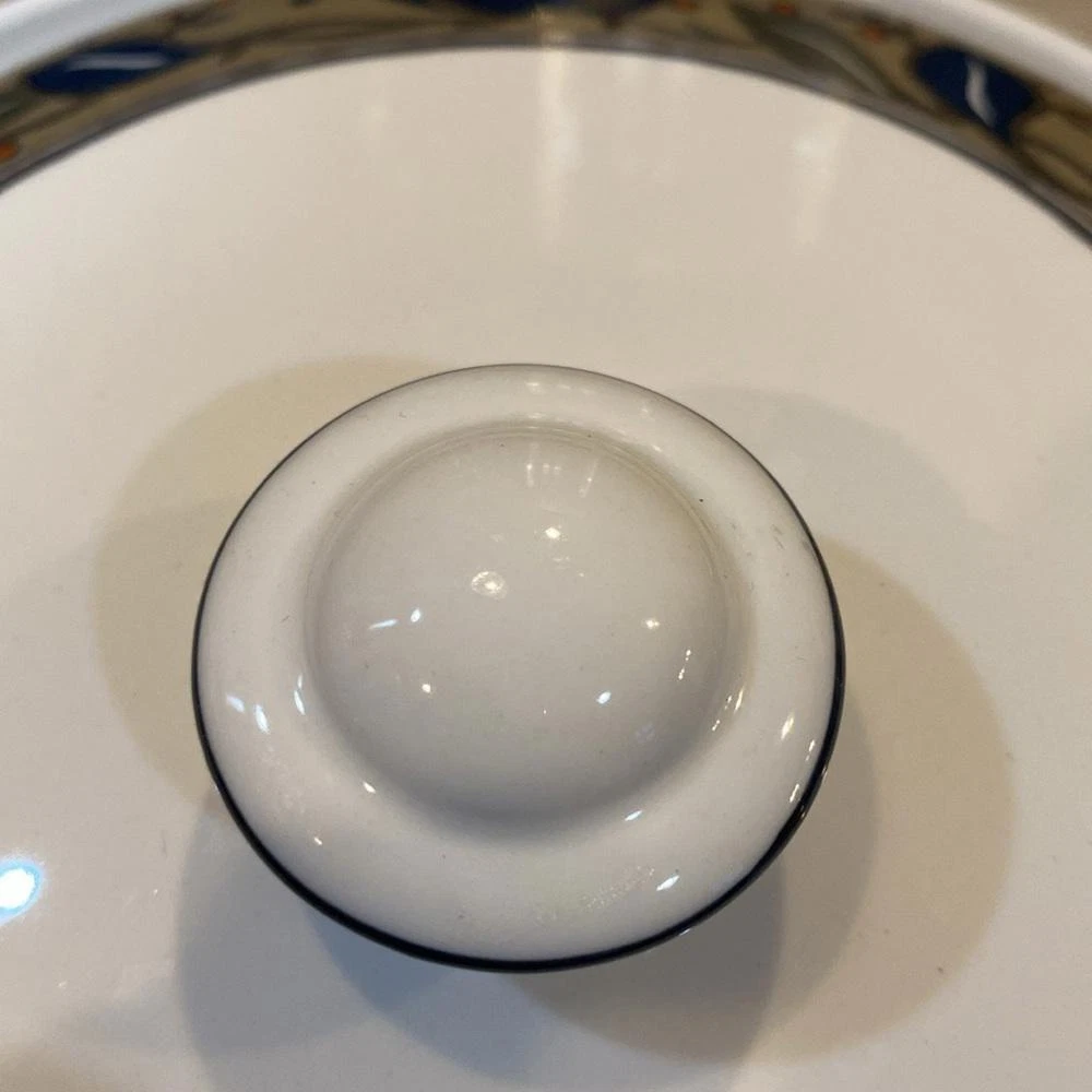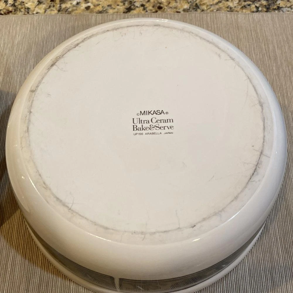 Excellent condition.5” height x 10” diameter. Elevate your dining experience with the Mikasa Arabella Ultra Ceram Bake & Serve Casserole dish, complete with a matching lid. This vintage-patterned piece combines timeless elegance with practicality, perfect for both special occasions and everyday use. Crafted from high-quality ceramic, it promises durability and a touch of class to your table. The dish boasts a serene blue hue that complements a wide range of decor styles, making it a versatile addition to your kitchen collection. Whether you're hosting a dinner party or enjoying a quiet meal at home, this casserole dish will serve your culinary creations with sophistication and charm.