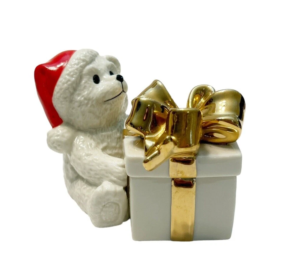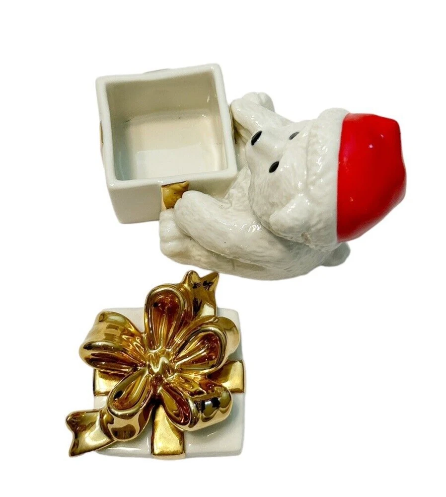 Mikasa Bear Gold Bow Trinket Covered Box Holiday Xmas Magic Fine Porcelain FK015 Smoke free home Please visit my store at https://www.ebay.com/str/theuniqueredhead . Thank you for your consideration. Please message me if you have any questions. I do combined shipping on my items in the store.