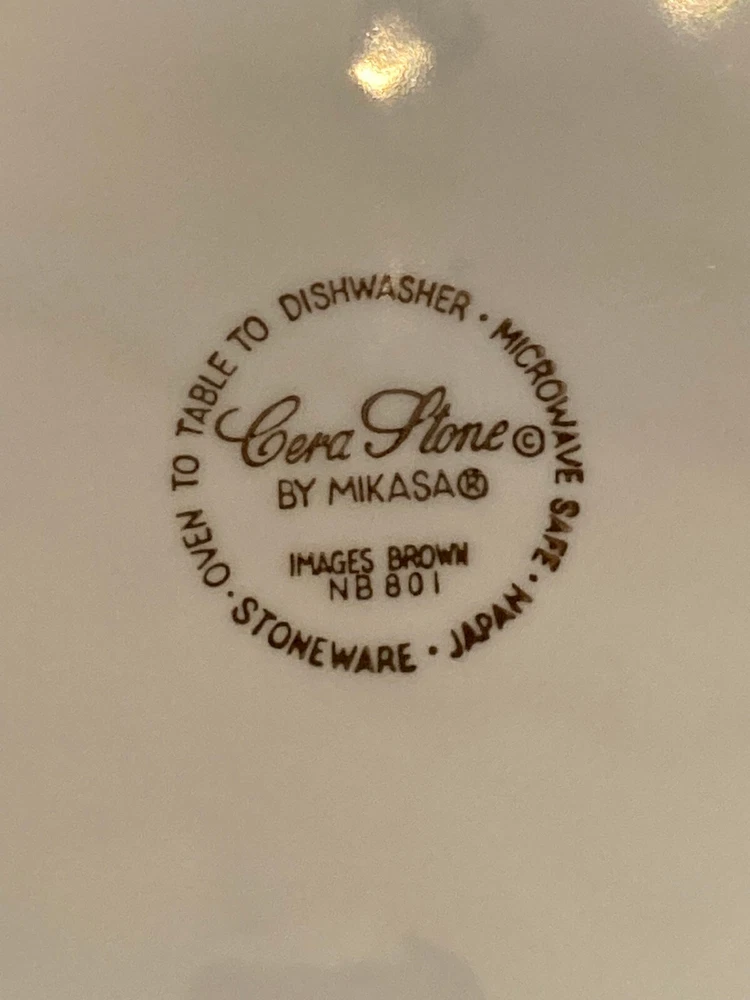 Greetings and Salutations Here I'm offering a Mikasa Cera Stone Images Brown NB801 Round Platter Chop Plate 12 1/8". Total: $19.99 Shipping/Packaging/Returns are free. Regards, The SHShopkeeper