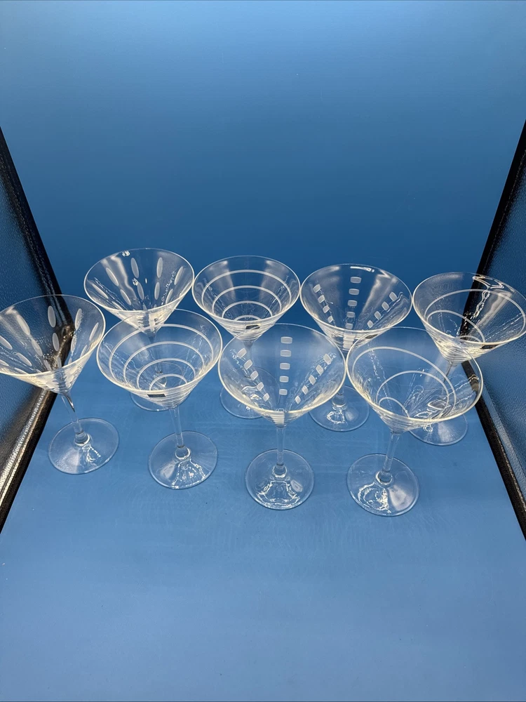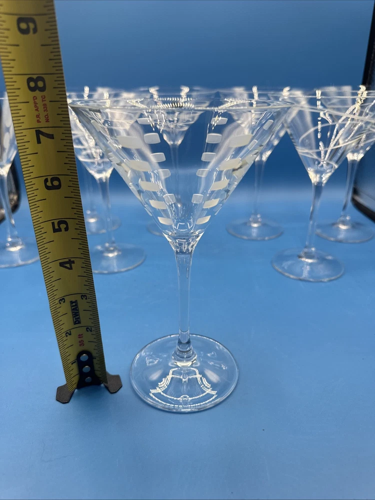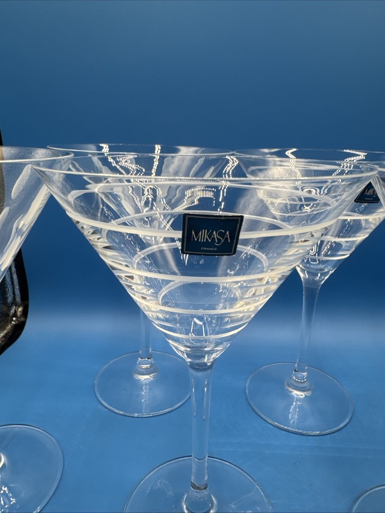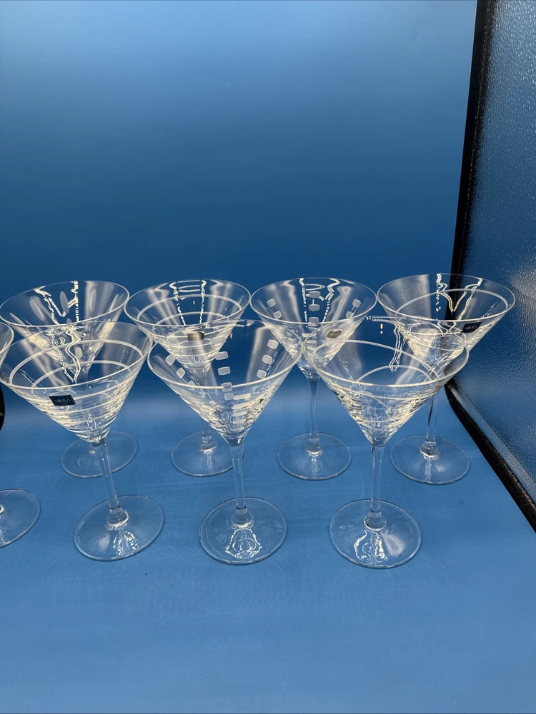 This lot of 8 Mikasa "Cheers" Martini Glasses are made of clear glass. Each glass is designed in a classic martini style, perfect for serving your favorite cocktails. The set is ideal for entertaining or adding elegance to your home bar. New. Never been used. Excellent condition. No cracks, damages, or chips. No original box. Some glasses have missing original labels. Please check the pictures carefully as part of the description. Feel free to ask questions if you need more information before you buy it. Thank you for your interest C-11