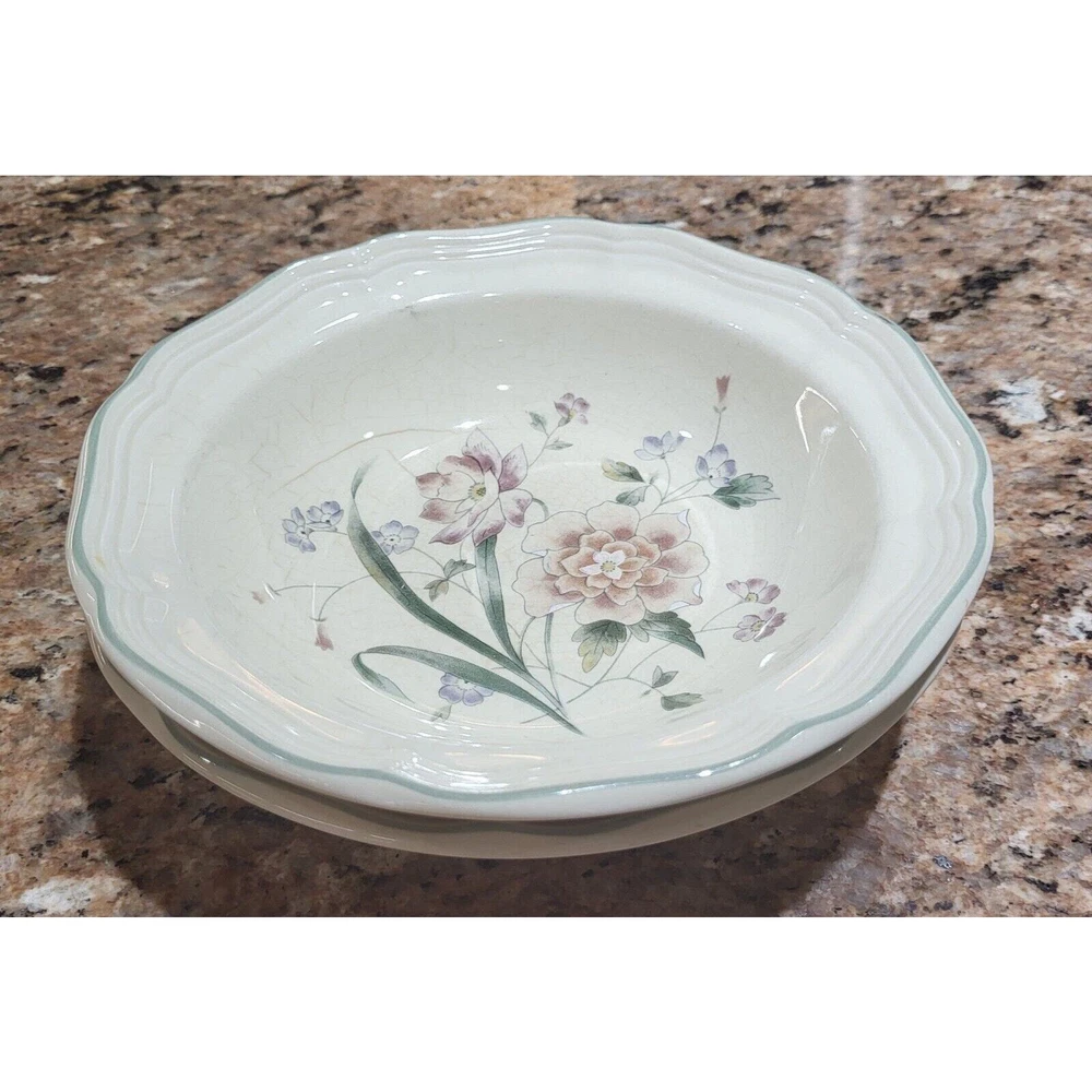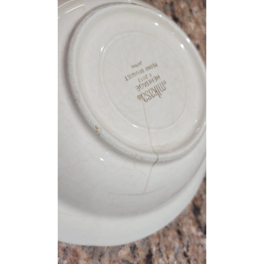 This Mikasa Heritage cereal bowl is a beautiful addition to any collection. The round shape and glossy finish make it perfect for all occasions. The beige color and peony bouquet theme add a touch of elegance to any table setting. Crafted from stoneware, this bowl is oven, microwave, and dishwasher safe. It has a printed backstamp and is an original piece from Japan. The set includes two cereal bowls, perfect for a morning bowl of cereal or a serving of soup. Add this decorative piece to your pottery and glass collection today. There are marks on the bowls consistent with its age. Overall I would say Fair condition... These 2 bowls do have cracks and crazing on them. Details of the cracks / crazing can be seen in the pictures. Please be sure to review the pictures prior to purchase. This pattern is discontinued. Check out my other matching pieces available for purchase separately here on eBay!