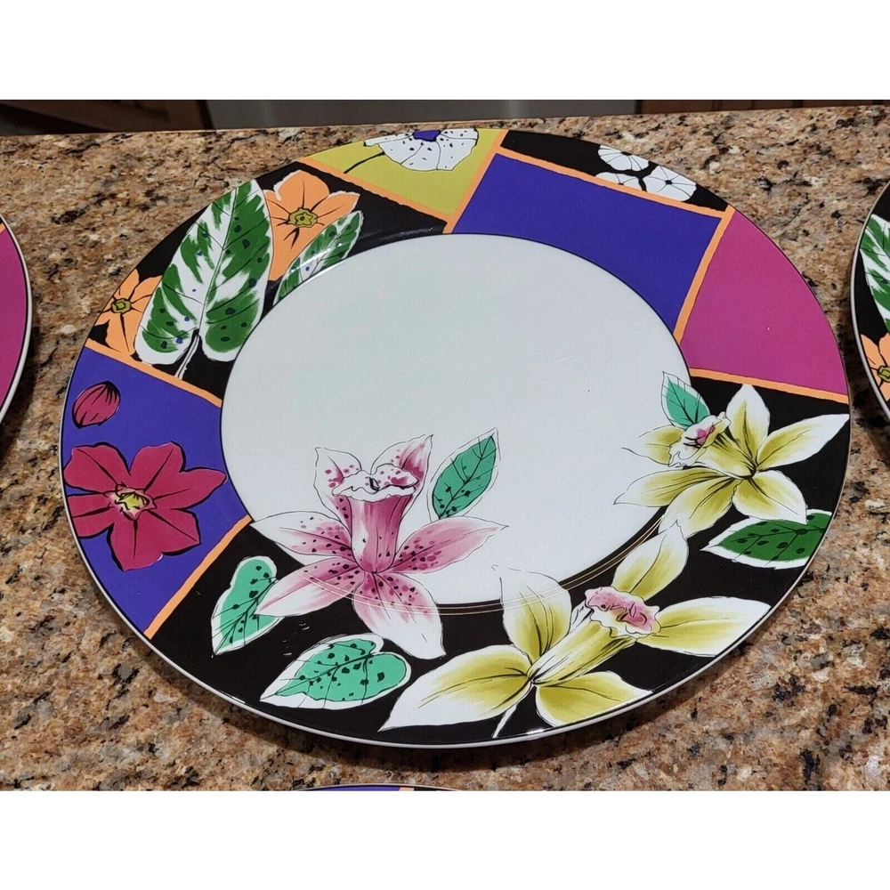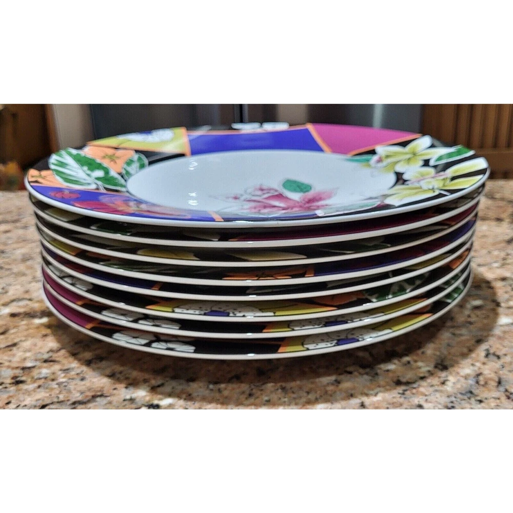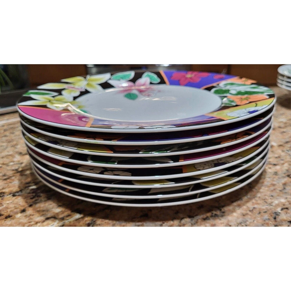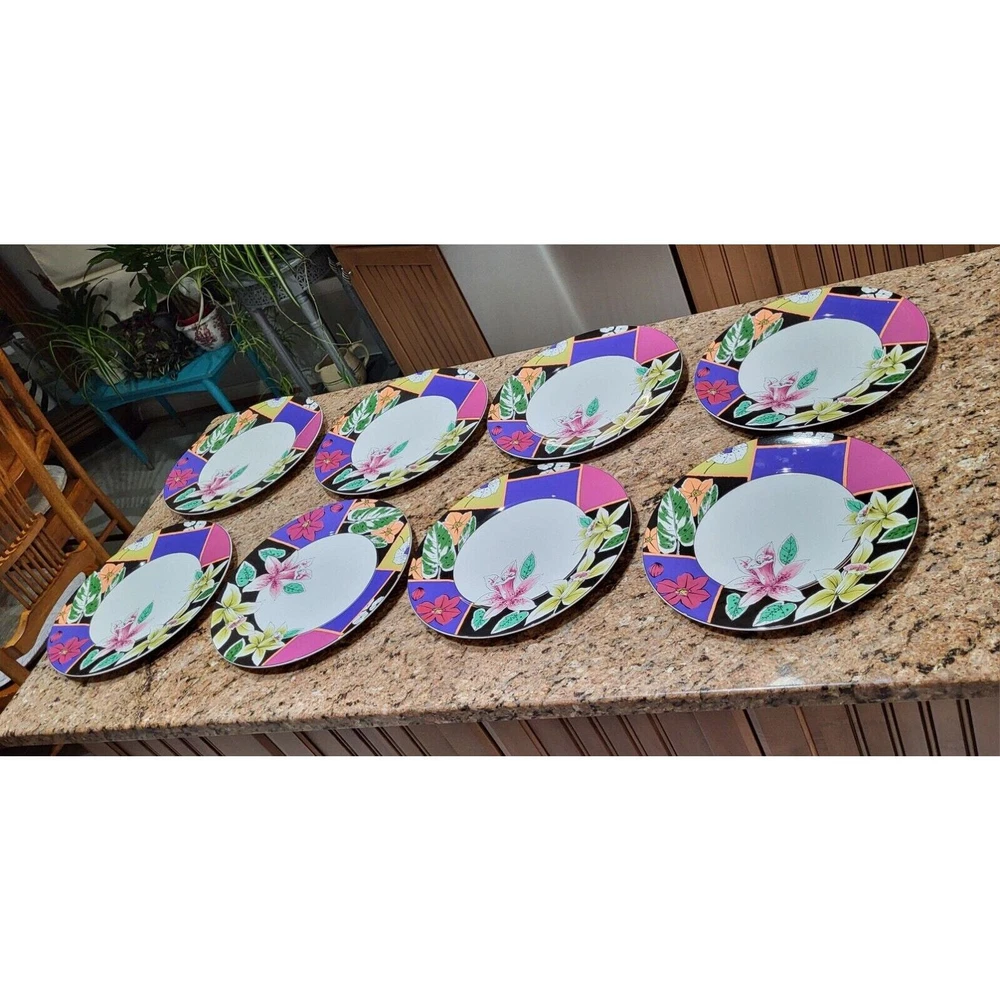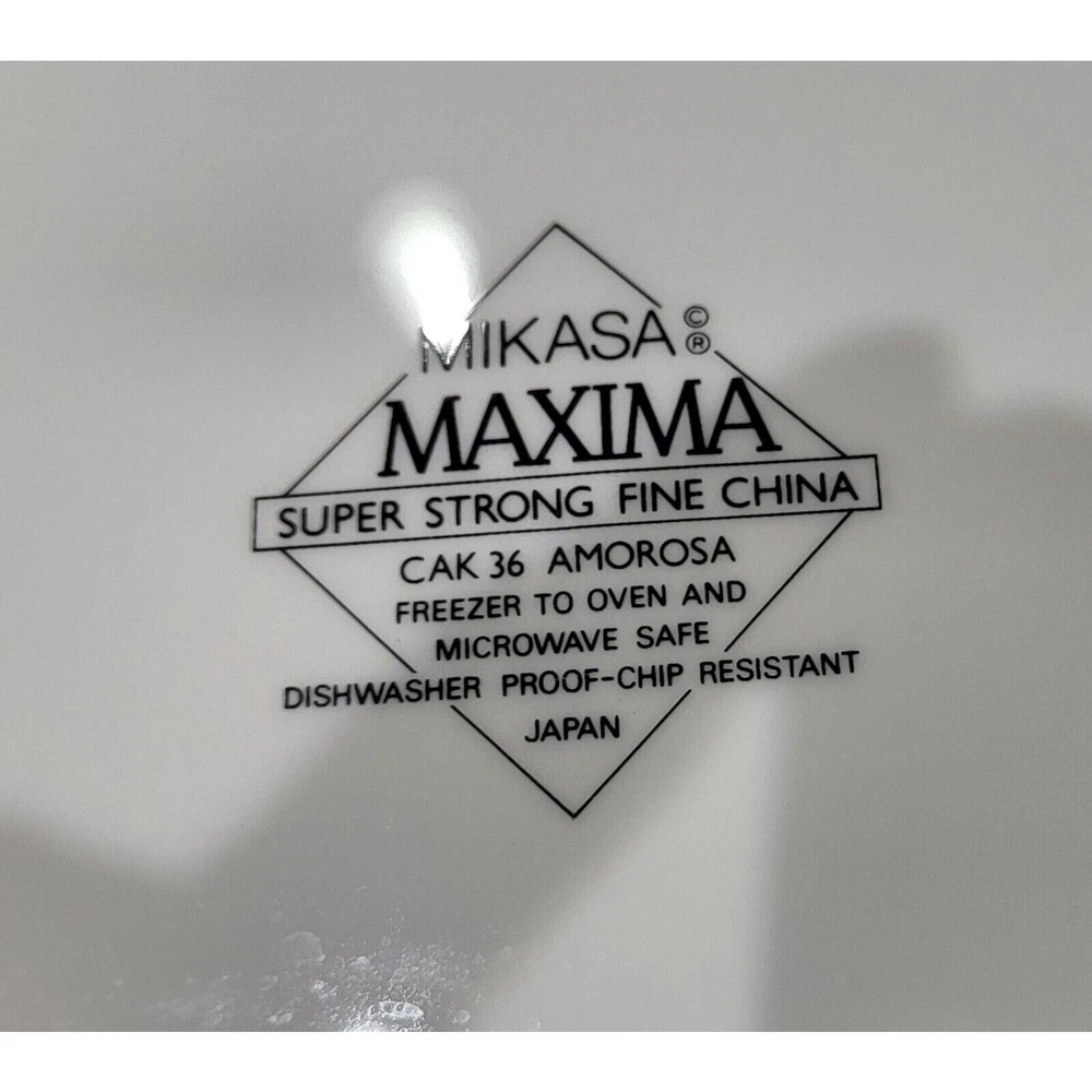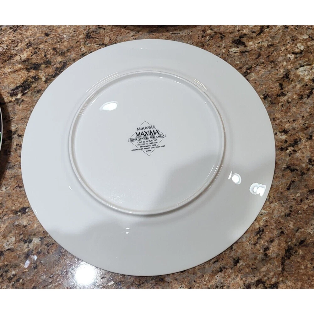 Enhance your dining experience with this exquisite set of 8 Mikasa Maxima Amorosa Fine China 12" Chop Plates. The round plate features a beautiful multicolor floral theme, perfect for all occasions. Made of high-quality porcelain, these plates are not only stylish but also durable. The set includes eight Chop Plates 12", which are perfect for serving full meals, appetizers or desserts. The plates are dishwasher safe, oven safe, microwave safe, freezer safe, and chip-resistant. These contemporary style plates are printed with the Maxima product line backstamp and made in Japan. Add this beautiful set of plates to your collection and impress your guests with your elegant dining style. Excellent pre-owned condition! No chips or cracks! One plate has a couple of minor scratches on it as shown in the pictures. Ready for your next gathering! These are extremely heavy plates therefore the cheapest method of shipping has been selected. Should you need priority please contact me so we can make that happen for you.