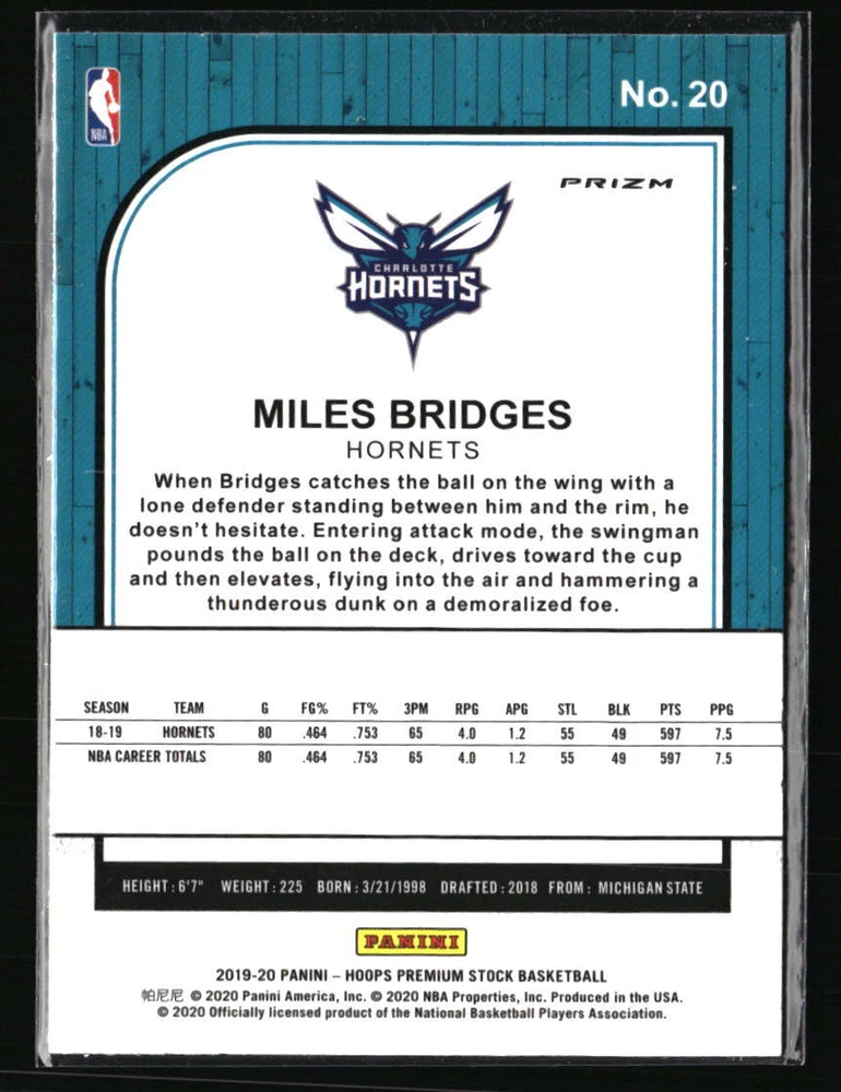 Miles Bridges 2019-20 Hoops Premium Stock #20 Basketball Card