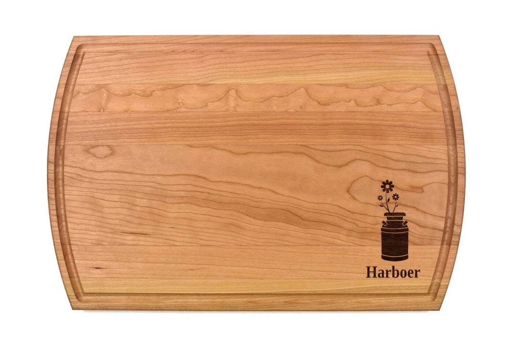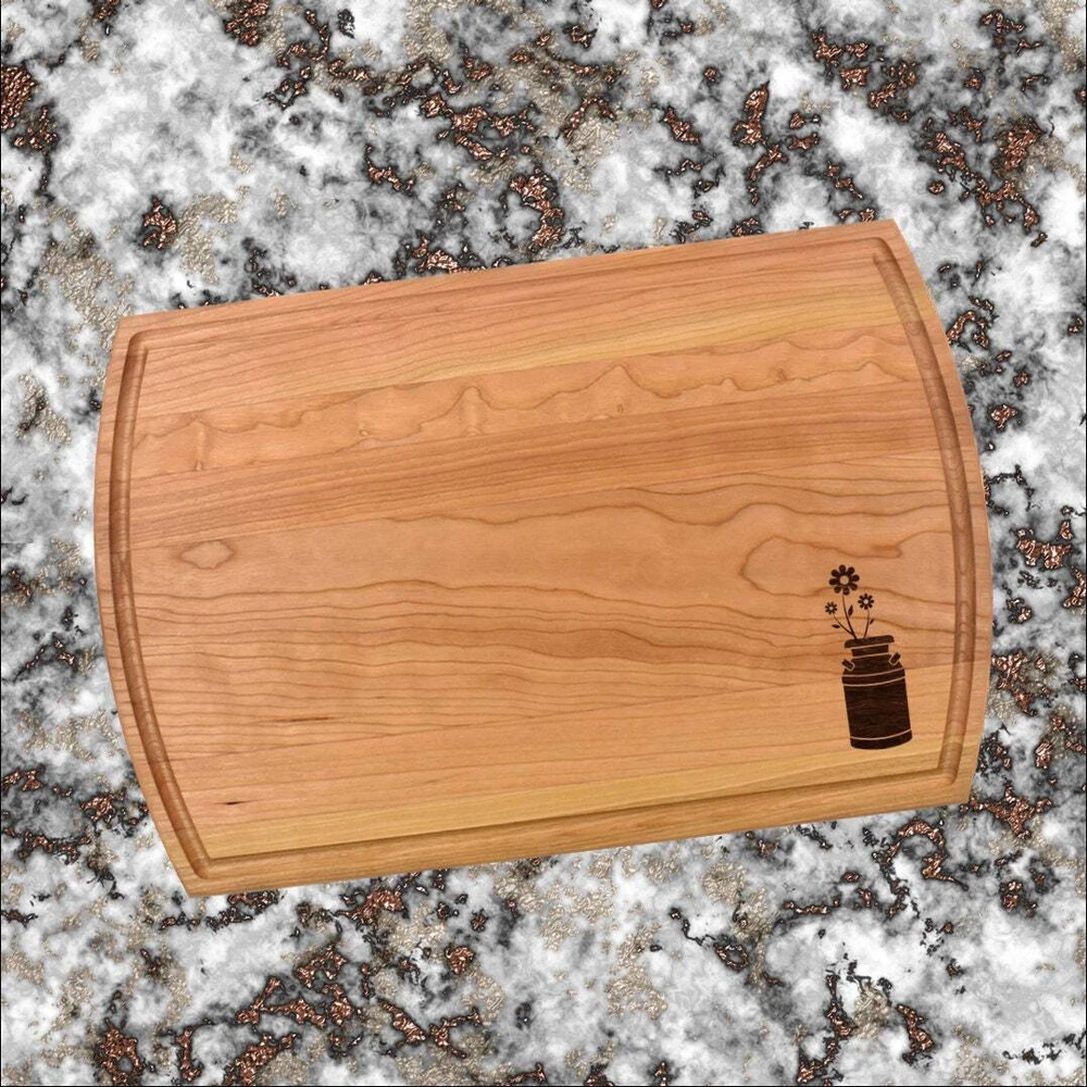 Design: Personalized Milk Can Flowers Cutting Board or Charcuterie Serving Tray All items ship via USPS - please make sure your address is correct :-) Whether used as a charcuterie serving tray for snacks or cutting board, our bamboo, walnut and cherry custom boards are the perfect addition for the home and make the perfect gift for your loved one celebrating a birthday, anniversary, new home, wedding, etc! *** FEATURES *** • SIZES: We have multiple styles and sizes available. To see our current sizes available, click the drop-down menu. The photo slide contains a photo showing each side by side. Please note, the board with the juice groove only has the groove on the front side of the board. • THICKNESS: Bamboo Boards - Approximately 1/2" Thick; Walnut & Cherry Boards - Approximately 3/4” Thick • UNIQUE: Every board is unique with the grain and coloring varying throughout - no board is the same! • CARE INSTRUCTIONS: Hand wash only with warm water. Do not soak. Please apply mineral oil throughout the board’s life. • PERSONALIZATION/CUSTIMIZATION: Do you want the text placed differently on the board? Please don’t hesitate to contact us. All personalization notes can be entered in the personalization box when checking out. • SHIPPING: All cutting boards ship within 2 to 5 business days. • WHOLESALE ORDERS: Please don’t hesitate to contact us for information about wholesale orders. Processing times for larger orders may change. • NOTE: Colors can vary a bit on different monitors and screens. Any props included in photos are not included. Please be sure to double-check your address to make sure it is accurate for USPS delivery. If a package is returned to us due to an invalid address, the buyer is responsible for all additional shipping charges. We appreciate you supporting small business – best wishes! For items ordered with simple edits, we do not send proofs since the layout doesn't change from the example(s). However, in the event there are requests that change the layout from the example(s), we do send proofs for approval before making the product. If you'd like a proof before we make the product, please note so in the personalization box.