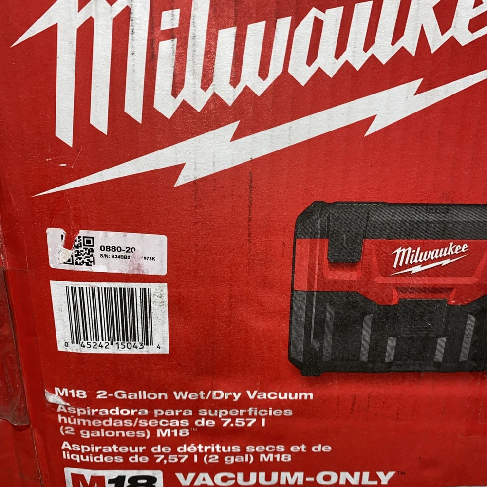This Milwaukee 0880-20 M18 18V Wet/Dry Vacuum is a powerful and versatile tool that can tackle both wet and dry messes with ease. It comes with a crevice tool accessory and has a blower feature for efficient cleaning. The vacuum has a runtime of 30 minutes and a charge time of 1 hour, making it a convenient choice for cleaning jobs of all sizes. The vacuum's bagless design means that it is easier to empty and maintain than bagged vacuums. It has a capacity of 8 liters and a HEPA filter that ensures that dust and debris are effectively captured. The vacuum is cordless, making it easy to maneuver and store. Its red and black colors give it a sleek look that is sure to complement any home or office decor. This vacuum cleaner has never been used, but the seal was broken on the box