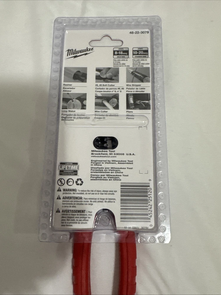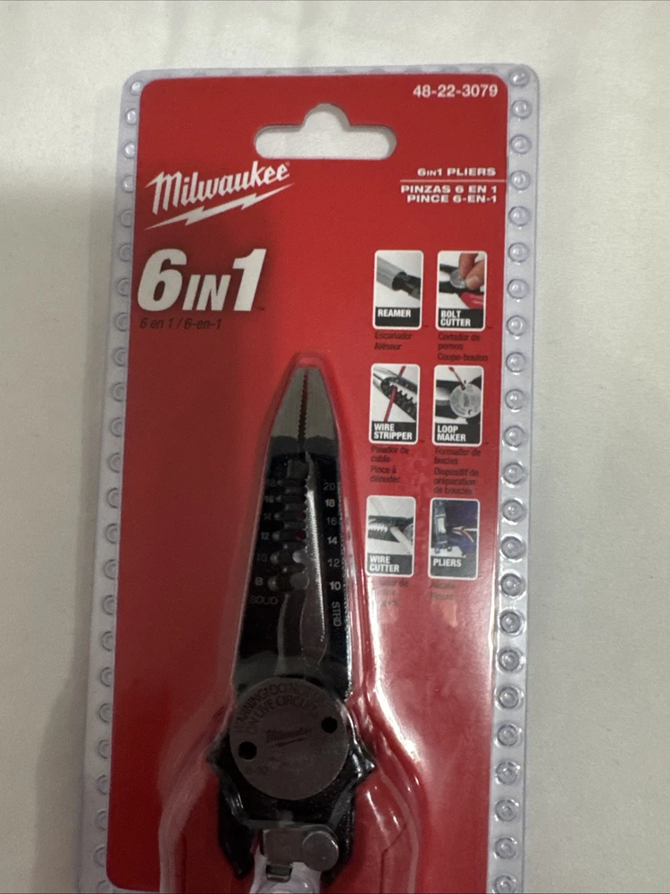 Milwaukee 48-22-3079 7.75in Combination 6-in-1 Wire Stripper/Cutter Pliers - NEW This is the Milwaukee 48-22-3079 Combination Pliers, measuring 6 inches in size with insulated handles. It features cushion grip, insulated design, and functions as a wire stripper/cutter. Made of stainless steel and metal, this tool is red in color with an item length of 7.75 inches and a weight of 0.67 pounds. Ideal for various tasks, this 6-in-1 plier is a new addition to your toolbox. · · · SHIPPING · · · Get free shipping on your order! We ship via reliable carriers like UPS, FedEx, and USPS We ship to the continental US (excluding PO boxes and APO/FPO addresses) Orders are usually shipped within 3 days or less. Items valued at $50 or more are subject to signature request. High value/special items are recorded with images by their unique serial number. Tracking number is sent personally to each customer. · · · RETURNS · · · Returns are accepted within 7 days of purchase Items must be in original condition and packaging- NO EXCEPTIONS · · · PAYMENTS · · · We accept all payment methods through eBay's payment system Please pay promptly after winning an auction so we can ship your item faster · · · FEEDBACK · · · Customer satisfaction is a top priority for us. If you have any issues with your order, please let us know. We will make every effort to resolve any problems and ensure you are satisfied. · · · Contact US · · · We appreciate your business. If you have any questions, please message us through eBay and we will respond within 24 hours on weekdays. Feel free to browse our eBay store for other available items. Thank you again for choosing to shop with us! · · · Suggested Products · · · Milwaukee 48-22-3078 7IN1 High-Leverage Combination Pliers $27.00 Milwaukee 8 In. Hex-Jaw Pliers- Brand New And Sealed- Free Shipping $20.50 Milwaukee 48-22-6106 Comfort Grip 6 Inch Diagonal Cutting Pliers Iron Carbide $19.50 Milwaukee Tool 48-22-3044 10-24 Awg Compact Comfort Grip Wire Stripper & Cutter $20.25 Milwaukee Tool 48-22-3081 12-16 Awg Nm Dipped Grip Wire Stripper & Cutter $21.00 Milwaukee 48-22-6107 Rust Resistant 7 Inch Diagonal Wire Cutting Pliers- Sealed $17.50 Add suggested items to your listings - Check it out on 3Dsellers.com eBay listing template by 3D sellers.com - Try for Free!