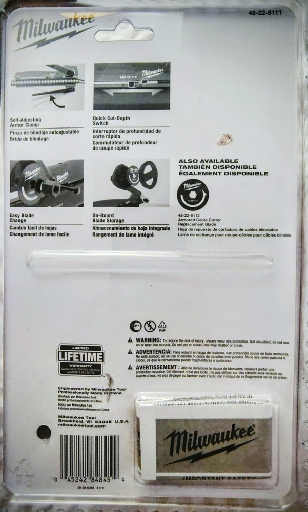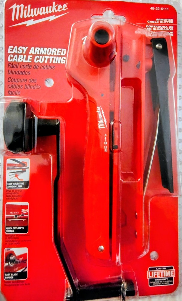 The Milwaukee Armored Cable Cutter MC, AC, BX, MCAP Greenfield 48-22-6111 is a high-quality cable cutter designed for automotive use. Made by the trusted brand Milwaukee, this tool is specifically designed to cut through armored cables with ease. With its durable construction and precise cutting capabilities, this cable cutter is a valuable addition to any auto tool collection. Whether you're a professional mechanic or a DIY enthusiast, this tool is sure to make your work easier and more efficient.