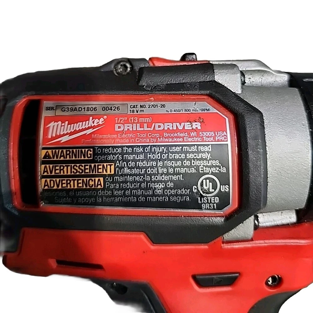Battery Technology:Lithium-Ion (Li-Ion)Motor Type:BrushlessNumber of Items in Set:3Power Source:BatteryVoltage:18 VNumber of Batteries:1Type:Drill SetBattery Included:YesModel:Milwaukee 2701-20Brand:MilwaukeeChuck Type:KeylessSet Includes:Battery Charger, Battery, Case