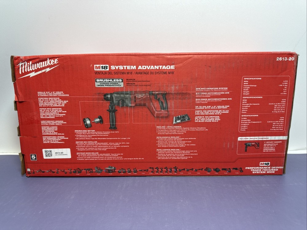 This Milwaukee M18 rotary hammer is an absolute beast! Powerful brushless motor delivers smooth, efficient performance—perfect for heavy-duty drilling and chiseling. Lightweight yet durable, it balances power and comfort. The sealed factory packaging ensures it’s brand new and ready to tackle any job. Definitely a must-have for serious contractors or DIYers who demand high-quality tools. No regrets at all—worth every penny!