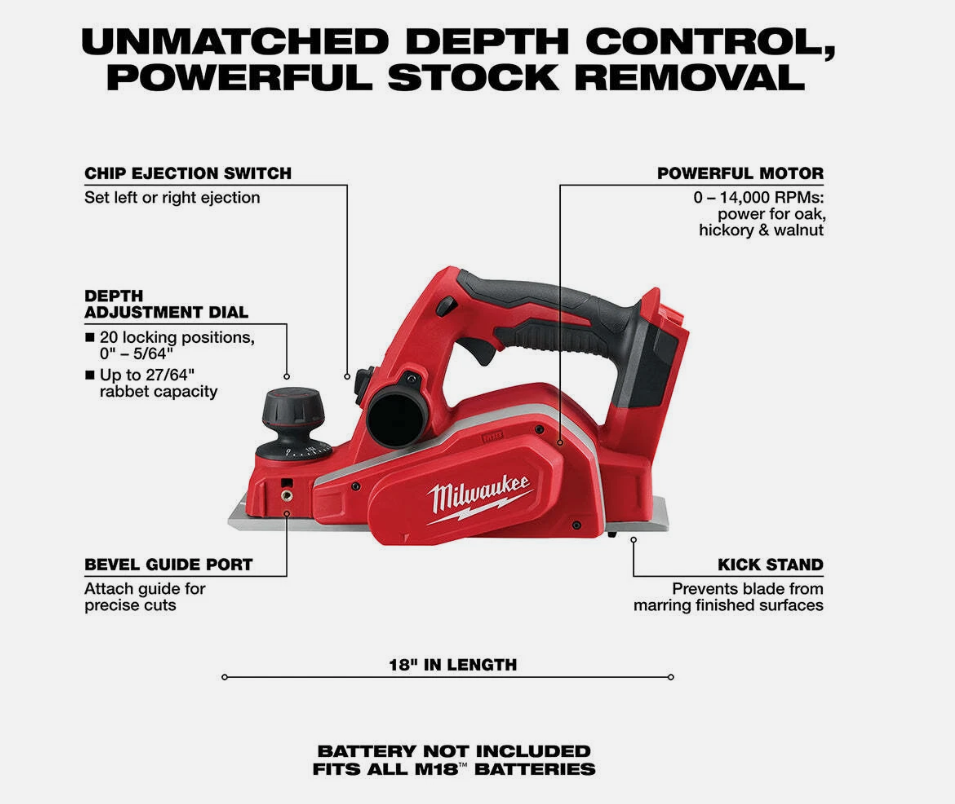 Milwaukee M18 3 1/4 in Handheld Planer - Red/Black/Gray (2623-20)