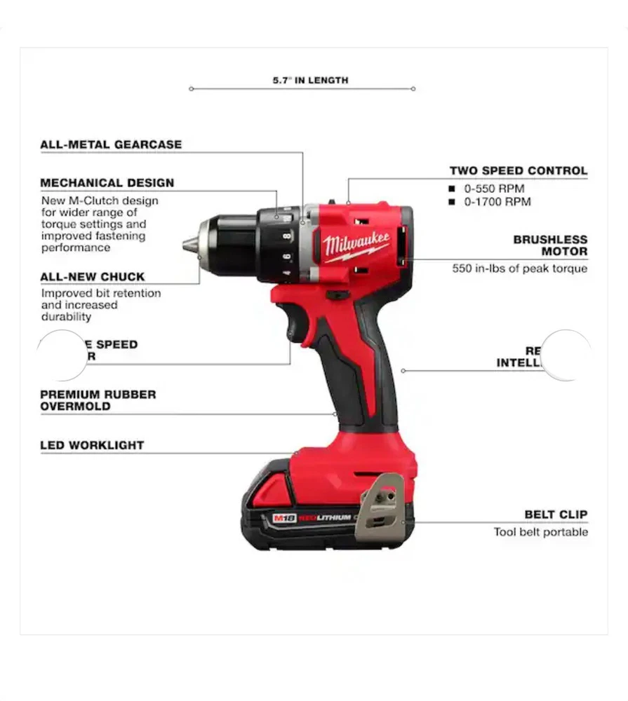Milwaukee M18 Compact Brushless 1/2" Drill Driver Kit (3601-21P)