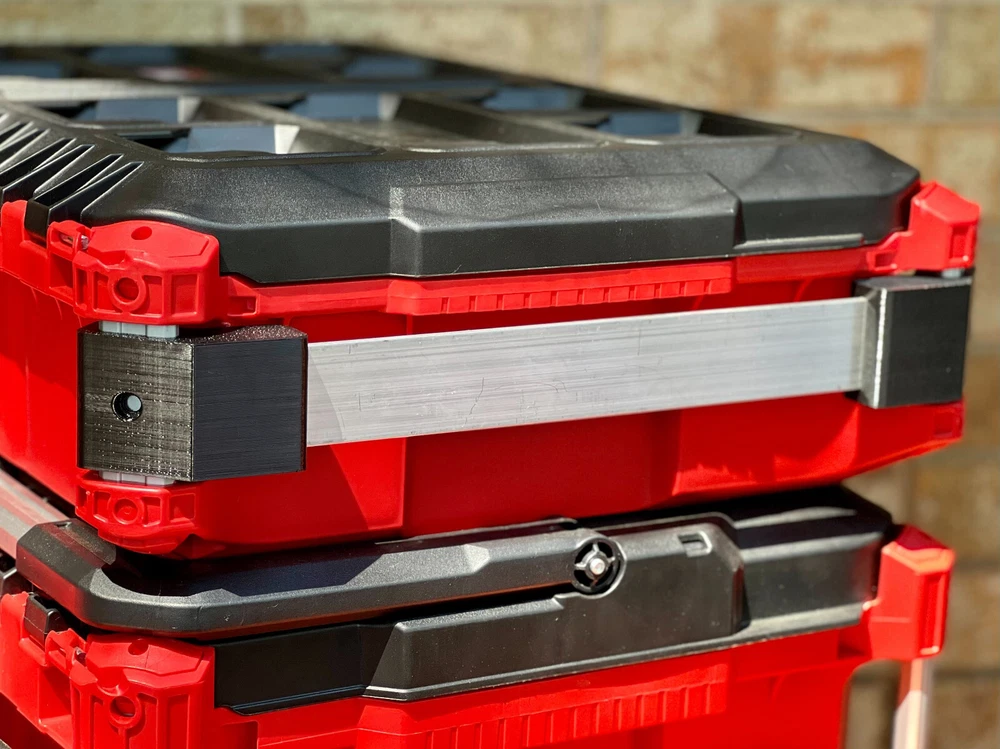 Secure your metal rail on your Milwaukee Packout with these sturdy holders! Proudly made in the USA using durable PETG for long-lasting use. No hardware needed. What's Included in this Listing: 1 pair of rail bracket holders What's is NOT included but you will need: 1x 11inch Long, 1.5inch wide, 1/8th inch thick Rail (you can easily get this at home depot/ Lowes and cut it to length) How to install: Remove Milwaukee guide rod screw from the top, and pull rods down (no need to fully remove) install Metal Rail between both brackets, and install them into your Milwaukee Packout kit. Push the rods up and secure them by screwing them back. This step is not necessary, just optional - These can be screwed onto the metal bar, if you choose to adjust the height (see the screws holes on the 3d printed part). No screws are provided. Lifetime guarantee! If you break it, send us a picture and we will replace it. *Milwaukee Packout is not included, just shown as an example