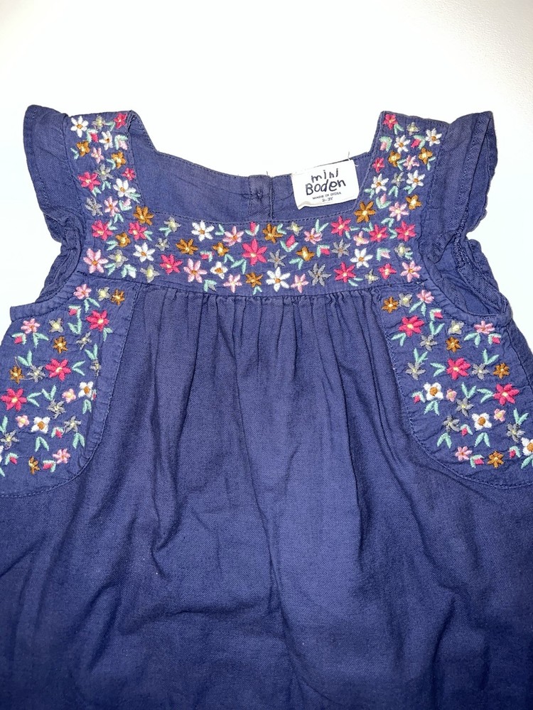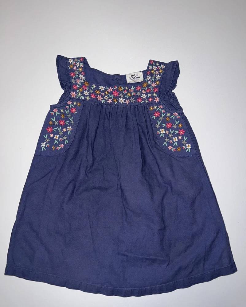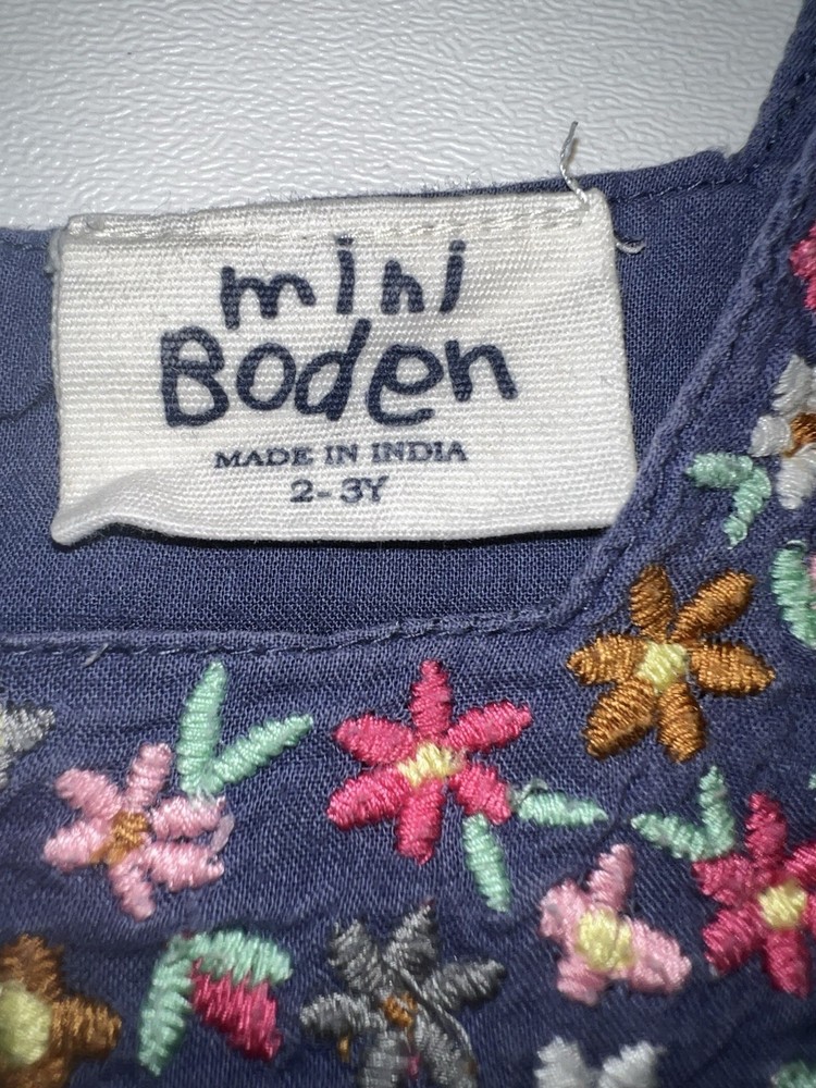 Mini Boden Blue Multicolor Floral Embroidered Dress Sz 2-3Y Floral embroidery at neckline Subtle flutter sleeves Square neckline 100% Cotton Size: 2-3Y Length 19”, Pit to Pit 112//2” Color: Blue Item B1182