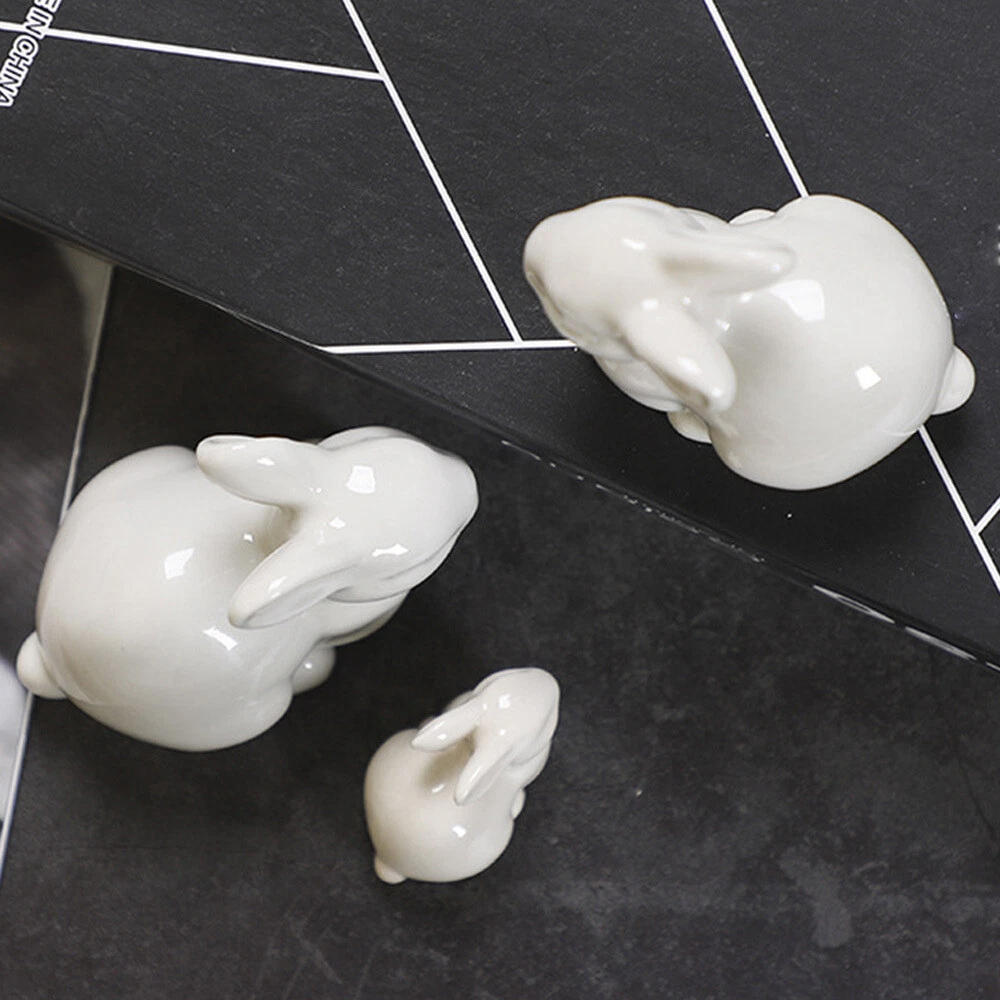 Mini Ceramic Rabbit Figurine Small Statue Home Ornament Figurines Collectibles