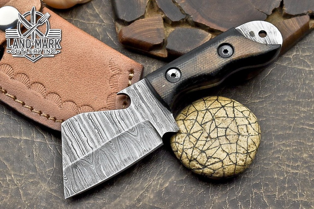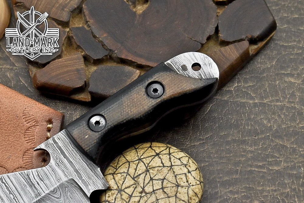 This mini tanto knife is a masterpiece—gorgeous Damascus steel blade with razor-sharp precision and a stunning brown micarta handle. The craftsmanship is top-notch, feels solid in hand, and comes with a quality leather sheath. Perfect for collectors or outdoor enthusiasts. Shipping discounts for multiple purchases are a nice bonus! Highly recommended.