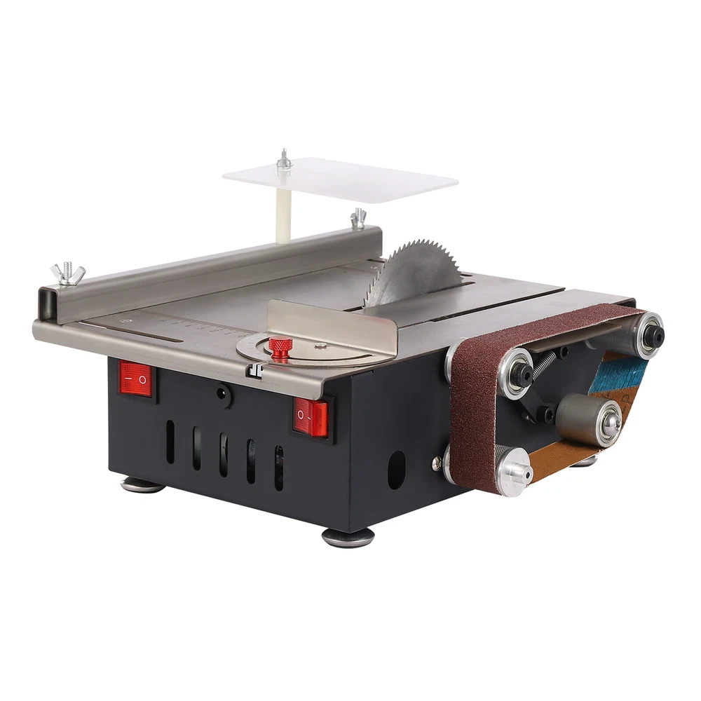 Mini Electric Table Saw Bench Circular Blade Woodworking Cutting Tool Machine US Description A good tool is indispensable for tedious cutting work. Our table saw is made of various high-quality materials and undergoes fine craftsmanship to ensure your long-term use. Good performance and complete accessories can make your cutting work more efficient, and a series of protective designs can enhance your usage safety. It will be a good helper in your work. Key Features Build to Last: Premium cold-rolled steel, acrylic, stainless steel, iron, rubber, and plastic spraying process make the product solid and durable, so it can remain beautiful and practical for a long time. Powerful and Efficient: The 200W pure copper dual-axis motor with low energy consumption and less noise, 4 sharp saw blades, 10000r/min high speed, and 33mm maximum cutting depth can provide strong power for your cutting work, thus improving your efficiency, and reducing the unsightliness and material damage caused by manual cutting. High-precision Work: The precision drilling collet has a clamping range of 0.06-0.39inch, and the soft shaft clamping range is 0.02-0.13inch. The scale printed with screen printing technology is not easy to fade, ensuring cutting accuracy. Adjustable Design: It features a push-pull slide design, 0-90° adjustable angles, and 7-gear adjustable speeds, ensuring accurate and flexible operation for higher production quality. Strong Stability: The horizontal design and four rubber foot pads keep the center of gravity at the bottom, maintain the stability of the product during operation, avoid displacement, and ensure smoother operation. Safety Guard: The clear baffle prevents debris from entering your eyes or the blades from hurting your hands while allowing you to see the whole production process. The heat dissipation holes can timely reduce the temperature of the product during operation, avoid safety accidents, and extend the product’s service life. Great Applicability: Our product features a two-in-one belt sander and table saw that is easy to operate, making it a miniature machine that can be used for both home and industry. The premium table saw can meet the cutting of wood, stone, bamboo, plastic, aluminum bars, etc. The precision belt sander can carry out the sanding of knives, wood, stone, bamboo, etc., as well as the sanding and peeling of linden. Simple Installation: The simple structure, complete accessories, and detailed English manual allow you to complete the installation and start using it in a short time. Labor-saving Cleaning: The smooth surface and removable design allow you to easily clean the dust and debris with a soft towel. Compact and Lightweight: A small size of 11.42*10*3.94inch and a net weight of 11.46 lbs lets you easily store and take it to any workplace. Compared with the clumsy and unsafe large table saw, this mini table saw is more convenient and safe. Ideal Gift: This high-performance and practical product is an ideal gift choice for carpenters, DIY professionals, and others. Details Round Corners: The arc design can effectively care for your skin compared with the traditional square corners to improve the safety of use. Robust Screws: Multiple screws make the product connection more secure and less prone to detachment. Application It can be used to cut small wooden sticks, bodhi seeds, beeswax, plastics, PCB boards, PVC, light wood flooring, acrylic, bamboo sheets, etc, and is widely used in creative production, woodworking decoration, handicraft manufacturing, and creative development of various projects in fields such as homes and DIY studios. It is an ideal choice for carpenters, DIY professionals, and others. Specification Color: Silver Style: Modern Shape: Rectangular Assembly Required: Yes Mount Type: Countertop Material: Cold-rolled Steel, Stainless Steel, Acrylic, Iron, Rubber Motor Type: Pure Copper Dual-axis Motor Surface Treatment: Plastic Spraying, Screen Print Indoor/Outdoor Use: Indoor Power Source: Corded Electric Plug Type: US Standard Power: 200W Input: 110-240V 50/60Hz 1.8A MAX Output: 12/15/16/18/19V 9.5A MAX; 20/24V 8.5A MAX No-loading Speed: 10000r/min Adjustable Speed: 7 Gears Angle Adjustment: 0-90° Saw Blade Size: 105*1*16mm/4.13*0.04*0.63inch, 100*1.5*20mm/3.94*0.06*0.79inch, 110*0.8*20mm/4.33*0.03*0.79inch, 110*2*20mm/4.33*0.08*0.79inch Maximum Cutting Depth: 33mm/1.3inch Suitable Sand Belt Size: 30*420mm/1.18*16.54inch Collet Clamping Range: 1.5-10mm/0.06-0.39inch Soft Shaft Clamping Range: 0.6-3.2mm/0.02-0.13inch Power Cord Length: 1.2m/3.94ft Gross Weight: 6kg/13.23lbs Net Weight: 5.2kg/11.46lbs Package Size: 34.5*32*20cm/13.58*12.6*7.87inch Product Size: 29*25.5*10cm/11.42*10*3.94inch Package Included 1* Mini Table Saw 4* Saw Blades 10* Sand Belts 1* Baffle 1* Adapter 1* Power Cord 1* English Manual Other Accessories for Installation Notes Please strictly follow the instructions for installation and use, and pay attention to the safety precautions inside. Please keep your hands away from the saw blade during work. Please be cautious of potential electrical safety hazards, take necessary personal protective measures, such as goggles, and keep this product out of reach of children on a daily basis. Please do not remove the cover of the adapter. Please use this product indoors. Please note that our table saw cannot be used to cut hard stone, jade, iron, steel, and other high-hardness metal materials. Please note that this product does not have saw blade lifting and forward and reverse rotation functions. Please allow the slight color difference caused by the shooting light and 1-3cm error due to manual measurement, and make sure you do not mind before ordering. Payment Delivery details Terms of sales About us Contact us Payment We accept ebay payment 。 Fees such as import duties, taxes are not included in the item price or shipping costs. These charges are the buyer's responsibility. Delivery details Shipping: 2-9 working days to: USA