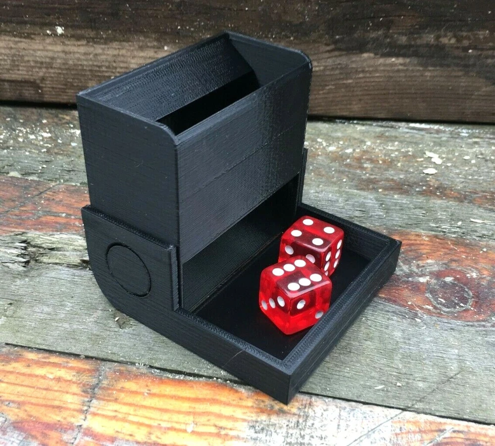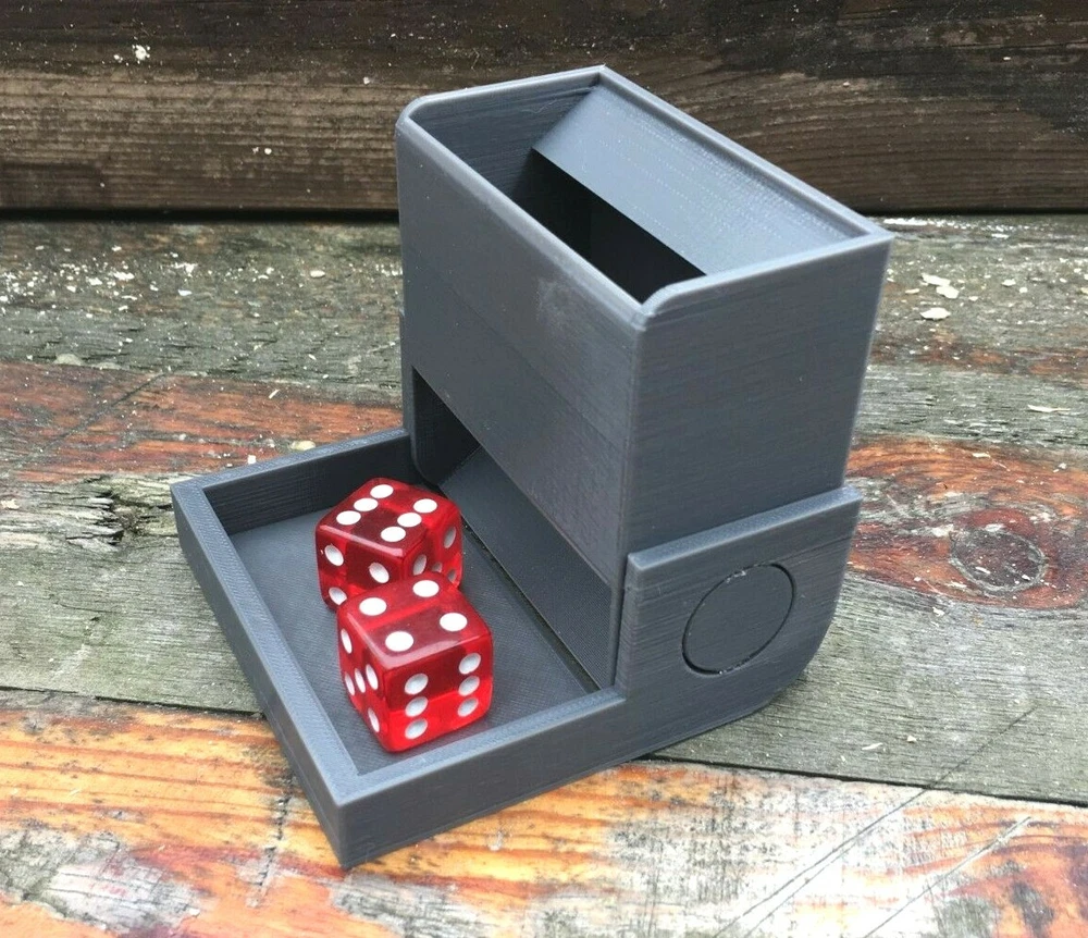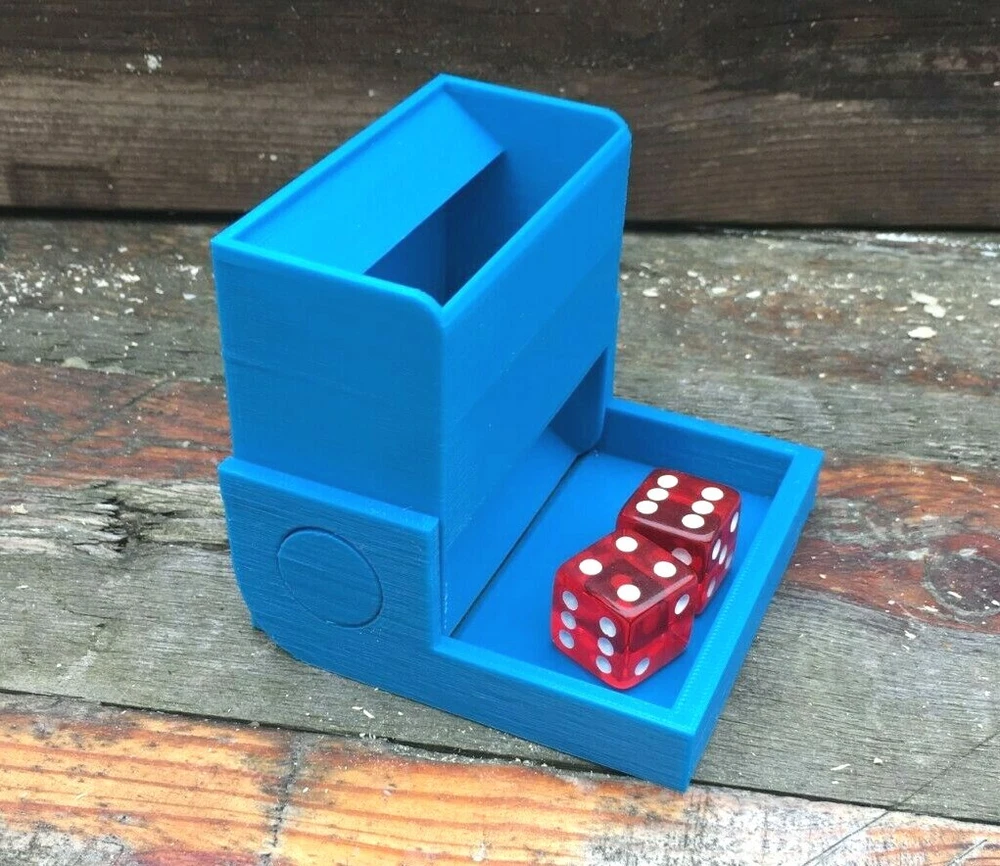 Mini Folding Travel Dice Tower for Traditional Table & RPG Dice Games e.g. D&D Ideal dice tower for table gaming at home or travelling and can be folded up when not in use. Triple baffles to ensure that dice are well tumbled and randomised when they come out - see them in action with both 19mm full size dice and a standard set of polyhedral dice on Instagram here: https://www.instagram.com/p/BuGyKh-Fzop/ The dice are contained within the tray walls, so no more inconvenient rolling off the table. Let us know which colour you'd like in Paypal " Notes to seller " - or if you'd like a custom colour not shown in the pictures. When open, dice tower is 80mm tall, 86mm wide and 86mm deep including dice landing tray. When folded shut, dice tower is 86mm tall, 86mm wide and 46mm deep. Please note dice are not supplied with the dice tower and price is for ONE dice tower. Thanks for looking and check out our other items in the Brighton3D store - we always combine postage. Based on the design of "Compact Dice Tower" (https://www.thingiverse.com/thing:700507) by MementoMori, where it is downloadable, and is licensed under the "Creative Commons - Attribution - Share Alike" license (https://creativecommons.org/licenses/by-sa/3.0/).