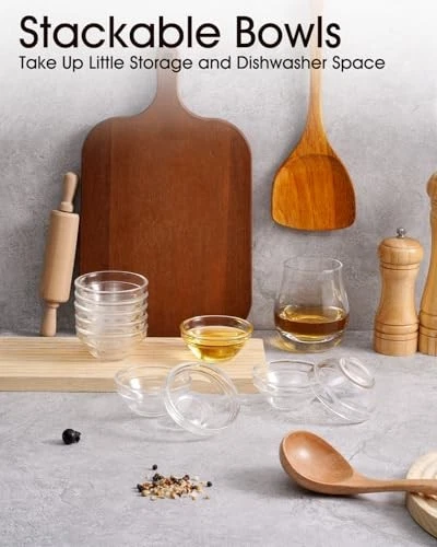These mini glass bowls are a game-changer in the kitchen! Perfect for prepping ingredients or serving dips, they keep everything organized and mess-free. The stackable design saves space, and the sturdy glass feels high-quality. Love how they make cooking smoother and plating more elegant—great value for a set of 10! Fast shipping too. Highly recommend!