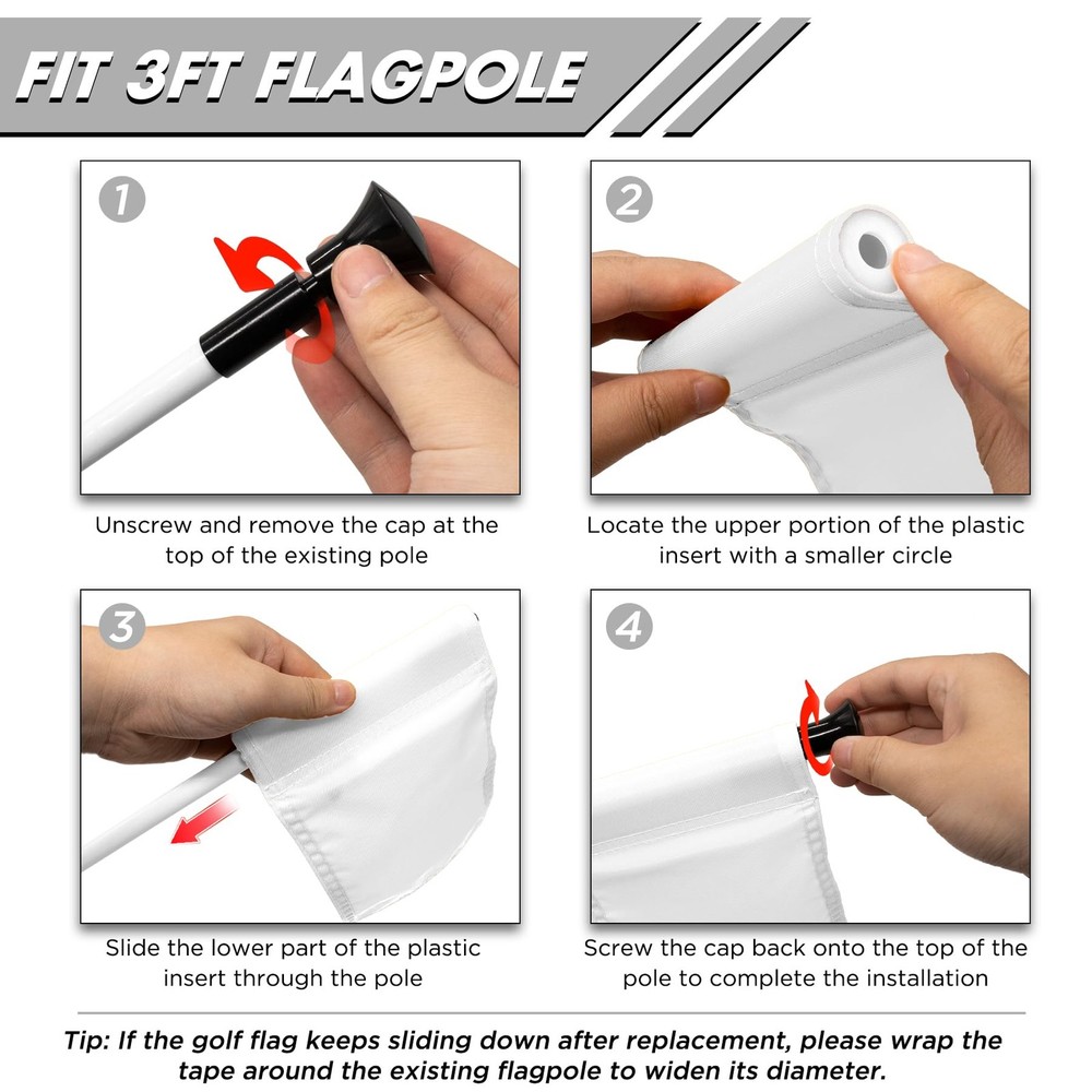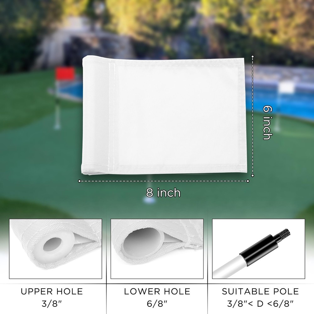 Upgrade your golfing experience with ’s Blank Golf Flag. Designed keeping the PGA Junior Flag standards in mind, it seamlessly fits 3-foot flagpoles. Constructed using premium engineering-grade 420D nylon, the flag promises vibrancy and anti-fade properties, ensuring that it remains as fresh as the day you got it. The meticulous double stitching offers impeccable durability, ensuring the flag’s edges remain intact. With an in-built ABS sleeve, mounting the golf flag is a breeze. Its range of colors lets you bring the authenticity of a formal golf course right to your backyard, making it an ideal choice for practicing or simply adding a touch of elegance to your private putting green. Whether you're an avid golfer or someone looking to elevate the aesthetics of your backyard, ’s golf flag stands as an unmatched choice. PGA Junior Standard Size: Specifically designed at 6" H x 8" L to fit 3-foot flagpoles, aligning perfectly with PGA junior flag standards. Vibrant Colors: Crafted from engineering-grade 420D nylon, ensuring vivid colors that resist fading even after outdoor prolonged exposure. Detailed Craftsmanship: Meticulously double-stitched to ensure edges don’t fray, offering robust longevity and consistent performance. Effortless Installation: Comes with a pre-sewn ABS sleeve on the left, fitting flagpoles within the diameter 3/8"< D <6/8", letting you set it up instantly. Perfect for Backyard Golfing: Elevate your backyard practice putting green! Available in an array of colors to match the backyard putting green, transforming your yard and creating memorable moments with friends and family.
