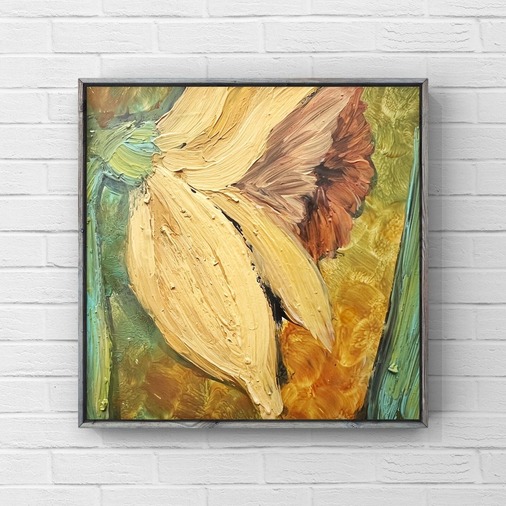 🌿 Impressionist Daffodil flower oil painting, Miniature original artwork, Ukrainian artist , Ukrainian shop. 🌷 Original author's oil painting on cardboard. 🌿 Size: 10x10 cm / 4x4 inches 🌷 Signed from the back. Made in Ukraine, 202 3. 🌿 Materials: professional oil paints, cardboard, brush. Unframed 🌷 I use exclusively professional and safe high quality paints for artists in my artworks. 🌿 Each parcel is securely and beautifully packed, so you don't have to worry about its safety. 🌷 Please note that paintings are sent without frames.