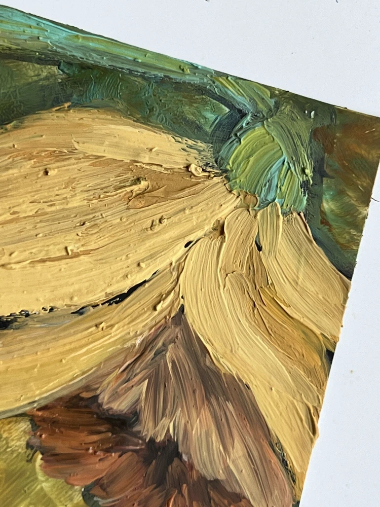 This miniature daffodil oil painting is absolutely stunning! The impressionist style gives it such a dreamy, vibrant feel, and the colors pop beautifully. It’s amazing how much detail the Ukrainian artist packed into such a small piece. The quality of the oil paints is top-notch, and the packaging was so secure—it arrived in perfect condition. Love that it’s signed and original, adding a special touch to my collection. Highly recommend for anyone who loves unique, handcrafted art!