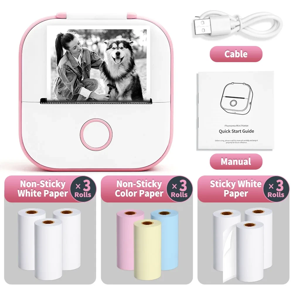 Phomemo T02 Feature: 🚀 [Enjoy More Interesting Life] -- New style inkless pocket printer is used to print pictures/photos, memos, shopping lists, study/meeting notes, etc. Mini sticker printer machine—it's a great helper to decorate your bullet journal more memorably, to make photos more stylish, to organize study notes more efficiently, to keep track of happiness moments at time, etc. Undoubtedly, it must be a special gift for children, students, teachers, and DIY craftsmen on Christmas, Children's Day, and Thanksgiving Day. 🚀 [Easy to Use Mini Sticker Printer] -- Blue compact travel wireless printer-wireless Bluetooth-connected sticker printer. This pocket mobile printer supports systems for iOS 9.0+ and Android 4.0 and above, but not support computer devices. Connect to the Phomemo app in 3 seconds; you can use it immediately. 🚀 [Multifunctional Phomemo APP] -- Every two weeks, we will update an abundance of templates, graphics, themes, and fonts, ranging from 10 to 90 sheets. Besides, the size and type of them are adjustable. Importantly, everything in APP is free forever. Only one-key printing, saving you much time, making your work richer, and life more funny. Hurry to enjoy your printing journey! 🚀 [Excellent Printing Quality] -- You can adjust this sticker printer machine's printing density to enhance the printing effect. Maintain 10 years without fading. Besides, more than 10 printing papers are supported by this mini sticker printer, and an extra paper holder helps to print more neatly. 🚀 [Save Much Money] -- Our portable printer for iPhone, compared to other printers, needs no toners or ink. And with a built-in 1000mAh rechargeable battery, the mini pocket thermal printer has a longer-lasting use for 1 week. Portable wireless printers for travel - lower cost and compact size - must be a good travel partner! Phomemo T02 Specification: Printing Method: Direct Thermal Printing Size: 3.4 X 3.5 X 1.6 / 87 mm X 90 mm 40 mm Nett: 5.3 oz/150 g Colors: Tiffany/Pink/White Printn: 203 dpi Batteryy: 1000 mAh Effective print 1.88"/48 mm Thermal Papere: 2 X φ1.2 / 53 mm X φ30mm Required System: Android/ioS Charging Port: Micro USB Power Supply: Lithium Battery Phomemo T02 Packing Includes: 🌈T02 Printer*1 🌈Data Line*1 🌈Paper Holder *1 🌈50*1.5m White Sticker*1 🌈User manual*1 Drop-shipping is welcome!!! We support CSV file or you can order directly by Aliexpress ( can use the plugin DSers ) ●No QR code! No invoice is in the Package! ●Always can send out the packages on the second working day! Contact us to get the pictures and videos without a watermark! ● Tel./Whatsapp: +86 132 2641 3659 ●Email: [email protected]