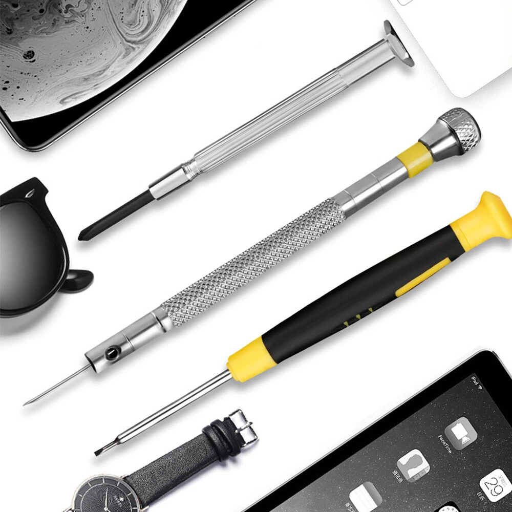 Small Mini Repair Kit Phones Watch Glasses Repair Set Repair Tool with Case 【Perfect For】Daily electronic repairs, smartphones, watch repairs, jewelry repairs, and other small screws. Rotating Design Eyeglass Repair Kit 【End Cover】Features a rotating design, making it flexible and comfortable to use. The tightly combined gap ensures a smooth rotation, improving efficiency and ease of use. High Quality 【Material】Made of high-quality chrome vanadium steel, with a hardened carbon steel shaft and black oxidation treatment. This makes the screwdriver set durable and corrosion-resistant. The small size is perfect for handling tiny screws. Warm Tips: Please keep the Mini Screwdriver Set out of reach of children and pets.