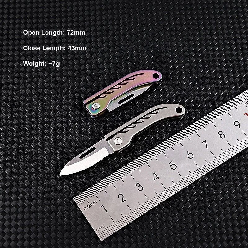 Description Mini Titanium Alloy D2 Keychain Folding Knife Pocket EDC Outdoor Camping Travel Survival Tool Details: You can use this tool at will to open envelopes/package. D2 steel blade surface is polished to make it sharper and tougher The handle is made of titanium alloy, adding a sense of comfort when holding it The simple design reflects the simplicity with a feeling of individuality The portable size and the folding blade make it easy to carry along The key chain to make it easier to carry along Handle Material: TC4 Titanium Alloy Blade Material: D2 Color: Gray, Colorful Open Length: 72mm Close Length: 43mm Blade Length: 27mm Blade Width: 8mm Net Weight: 7g Package: 1pcs Mini Titanium Folding Knife. On May 27, 2023 at 05:53:15 PDT, seller added the following information: