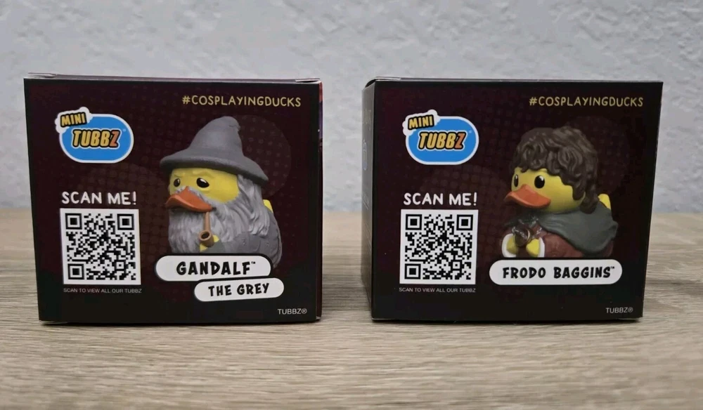 *Free shipping with USPS Ground Advantage. Ships ASAP. Packaged with care. Smoke-free home.* Get your hands on this amazing Mini Tubbz LORD OF THE RINGS Gandalf The Grey & Frodo Baggins Vinyl Duck 2" Figures set. This set includes two collectible figures of your favorite characters from the movie franchise - Frodo Baggins and Gandalf. The figures are made of high-quality vinyl material and come in a boxed package, making it a perfect gift for any LOTR fan. Not only are these figures perfect for display, but they also have a unique feature - they can ride in your Jeep! The set is designed for children aged 3+. The figures are multicolored and have a cosplaying duck model, making them a perfect addition to your action figure collection. The set is manufactured in China and is part of the Mini Tubbz series. Get this amazing set now and add it to your collection!