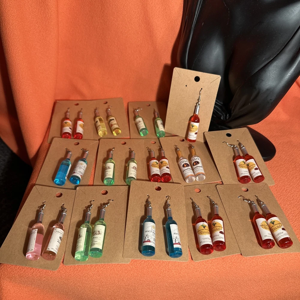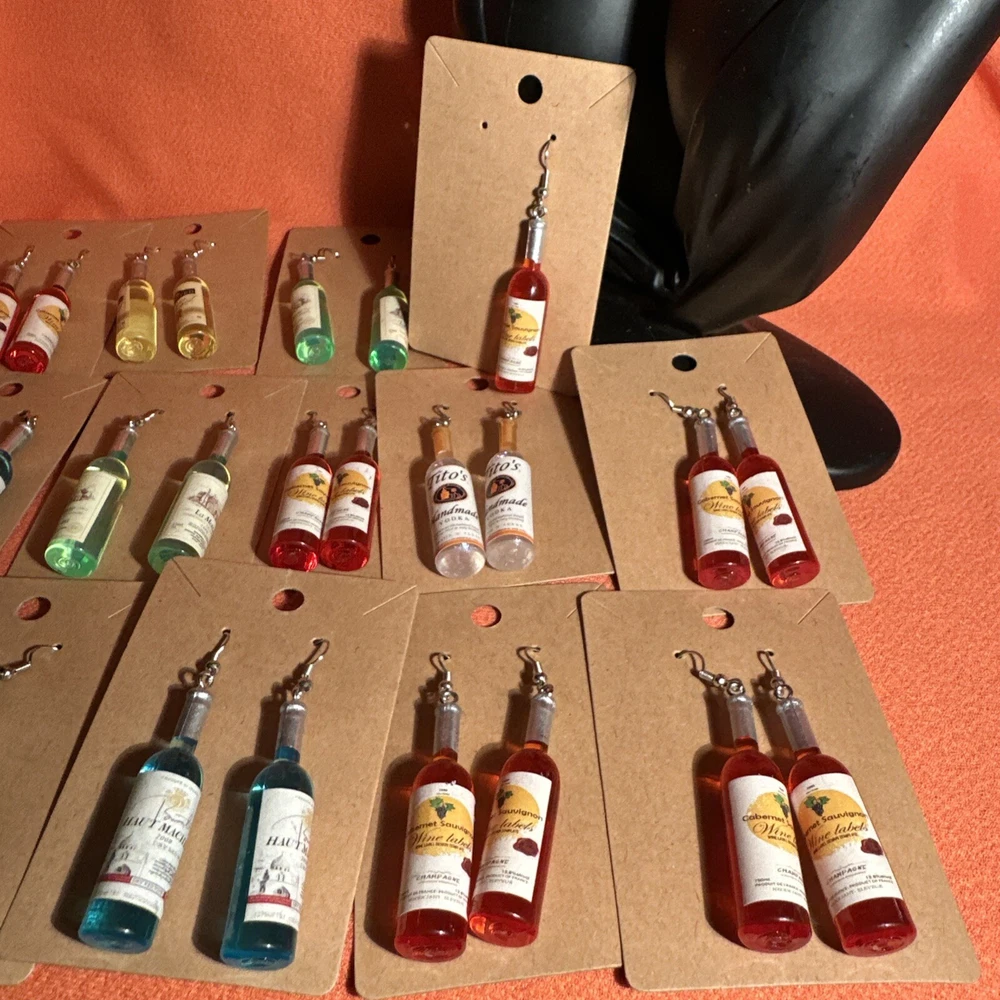 Mini Wine Bottle earrings, Lot Of 14 Pairs Brand New
