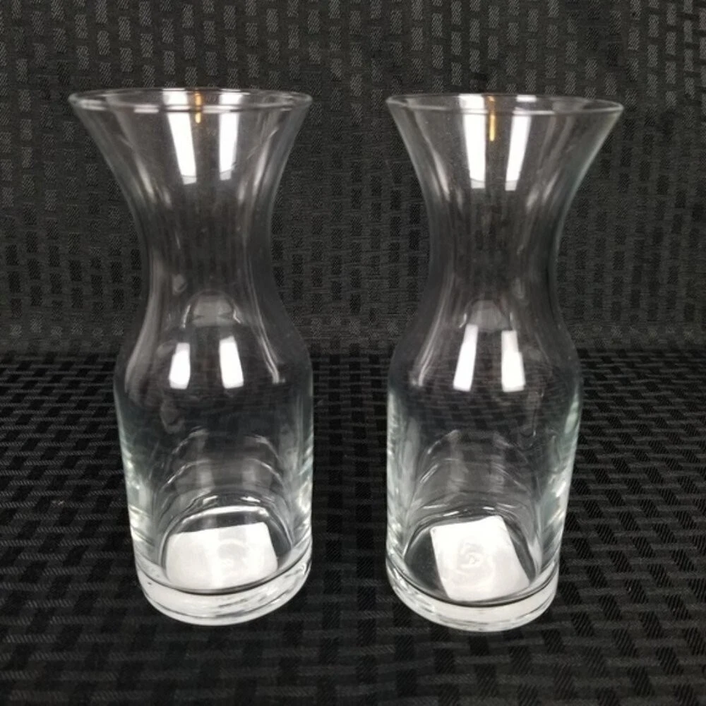 NEW Single Serving Mini Glass Wine Carafes Set of 2. Each decanter can hold up to 10 ounces of liquid. Let your wine breathe before you indulge. Wine not included. Size: 6.5" tall Holds up to 10 oz. Set of 2 wine carafes