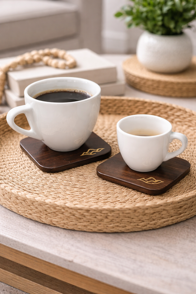 This mini wooden coaster set with holder is designed specifically for shot glasses, espresso cups, sake cups, and small drinks , making it perfect for bars, coffee stations, and compact tabletop spaces. Crafted from solid natural wood with a rich dark finish and elegant gold inlay accents, these coasters protect surfaces while adding a refined rustic touch to your décor. The compact size makes them ideal where standard coasters are too large. ✅ WHAT’S INCLUDED: 4 mini square wooden coasters 1 matching wooden holder ✅ FEATURES: Compact size for shot glasses & espresso cups Solid natural wood construction Decorative gold inlay design Smooth polished finish Space-saving holder keeps coasters organized Ideal for bar carts, coffee bars & small tables ✅ PERFECT FOR: Shot glasses & tasting flights Espresso & demitasse cups Sake cups Bar carts & home bars Unique gift ideas 📌 Care Instructions: Wipe clean with dry or slightly damp cloth. Do not soak. 📏 OFFICIAL DIMENSIONS Individual Coasters: Size: 7.5 cm x 7.5 cm x 0.8 cm (approx. 2.95" x 2.95" x 0.31") Holder (Estimated): Approx: 8.5 cm x 8.5 cm x 3.5 cm order ships the next day after purchasing