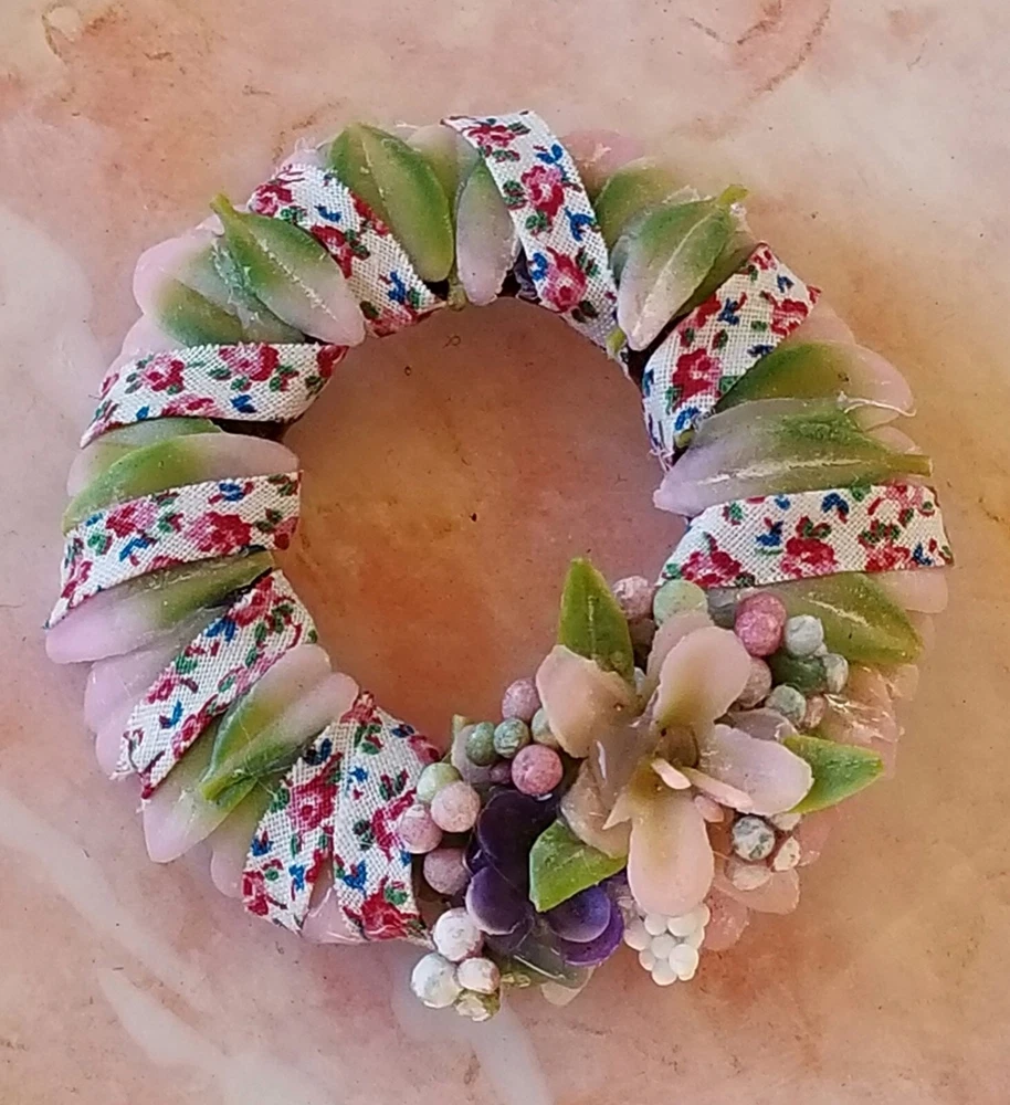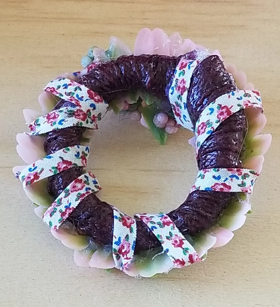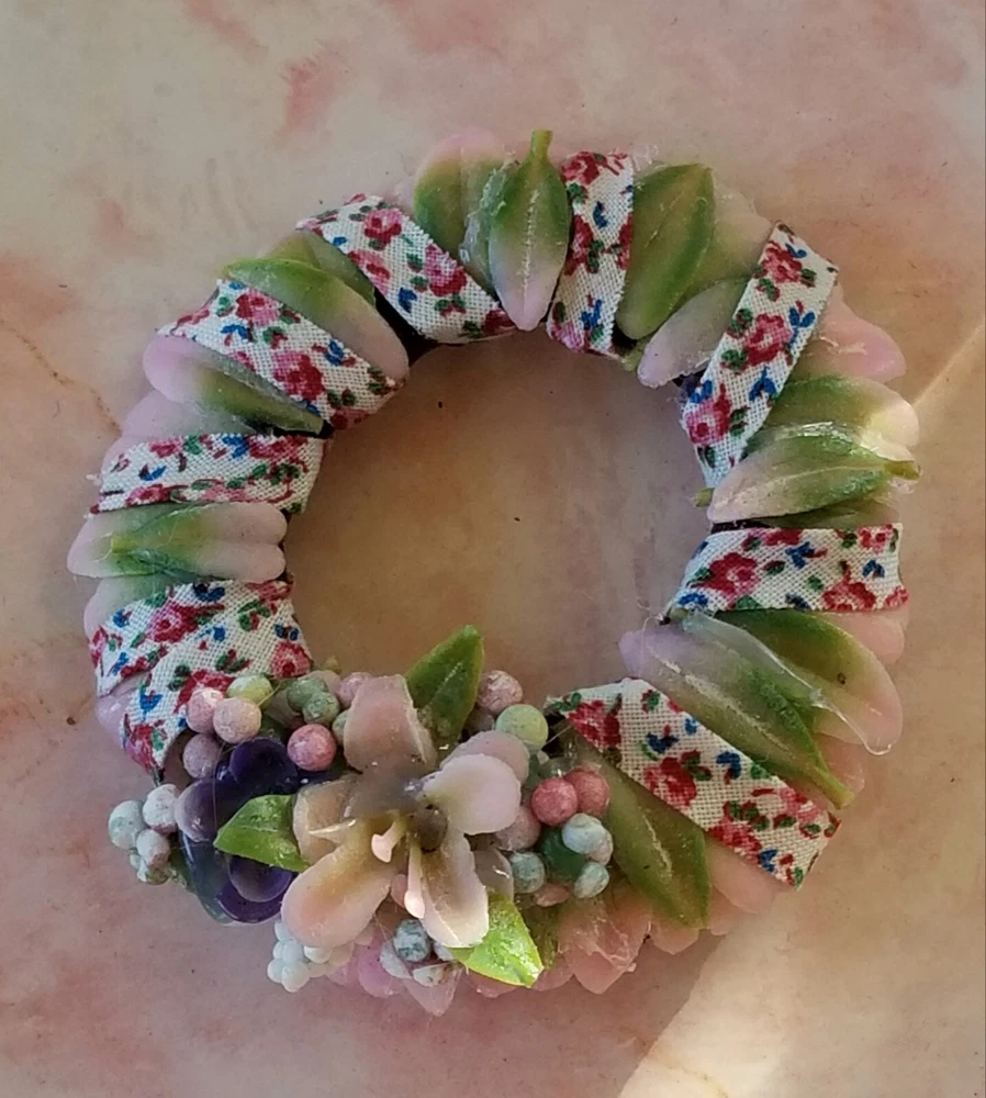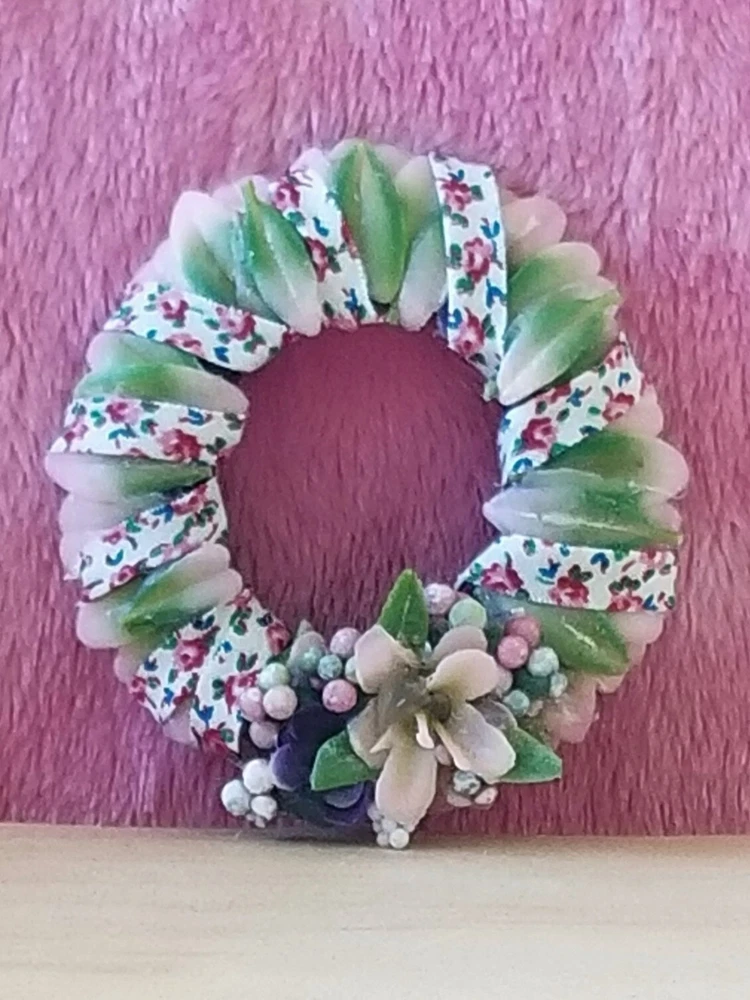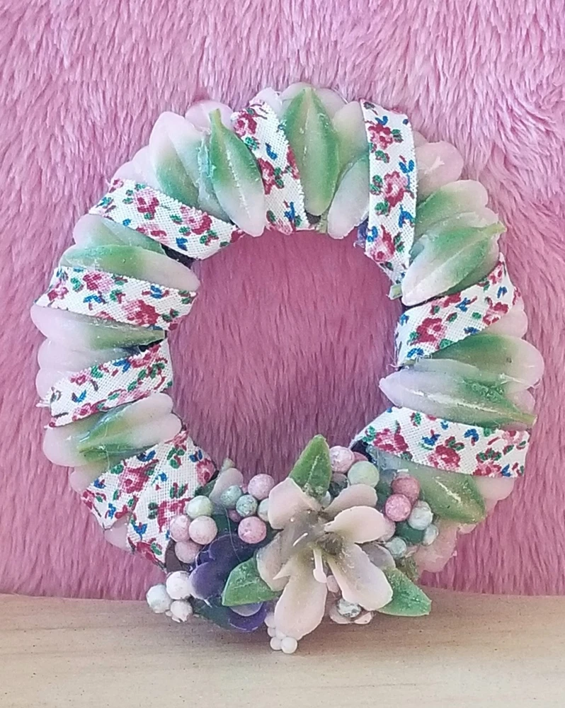 Type: Wreath Color: Pink Original/Licensed Reproduction: Original Country/Region of Manufacture: United States Style: Cottage Number of Items: 1 Material: Plastic, Fabric, Vinyl, Glue Suitable for Room: Bedroom, Any Room, Outdoor, Sunroom Item Width: 2 in Handmade: Yes Features: Artist Made, One Of A Kind Item Height: 2 in Brand: Handmade Theme: Easter Age Level: 12+ Scale: 1:6 Unit of Sale: Single Unit