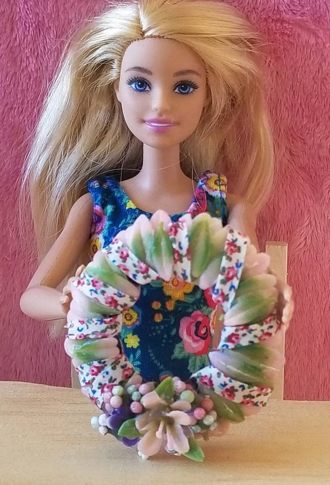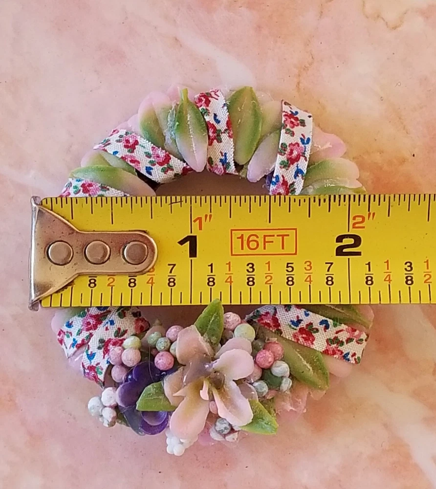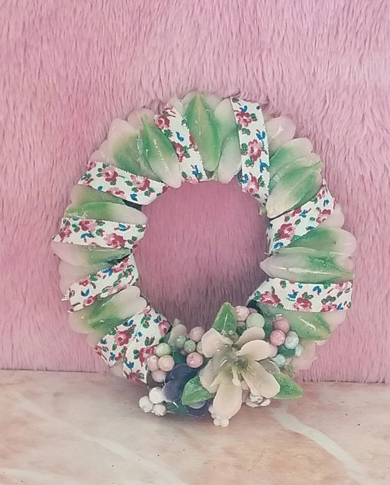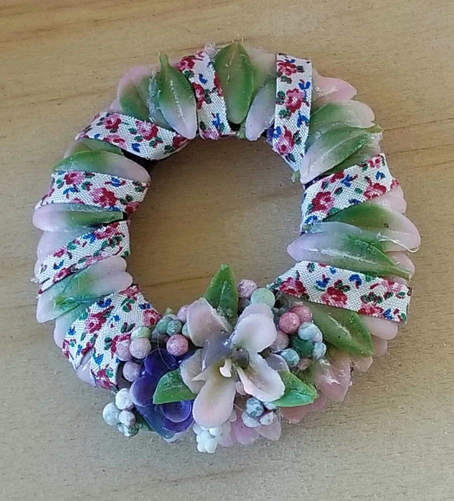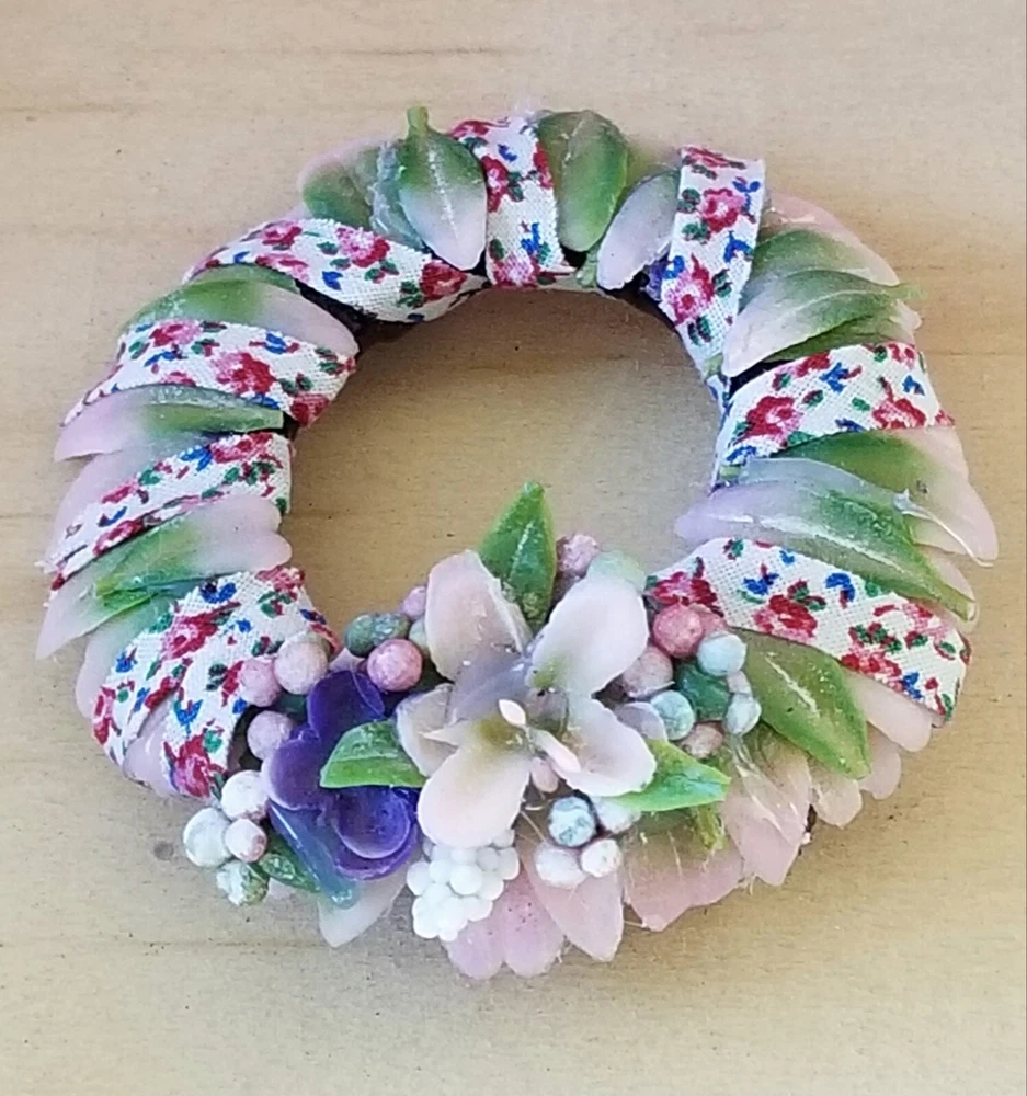 Type: Wreath Color: Pink Original/Licensed Reproduction: Original Country/Region of Manufacture: United States Style: Cottage Number of Items: 1 Material: Plastic, Fabric, Vinyl, Glue Suitable for Room: Bedroom, Any Room, Outdoor, Sunroom Item Width: 2 in Handmade: Yes Features: Artist Made, One Of A Kind Item Height: 2 in Brand: Handmade Theme: Easter Age Level: 12+ Scale: 1:6 Unit of Sale: Single Unit