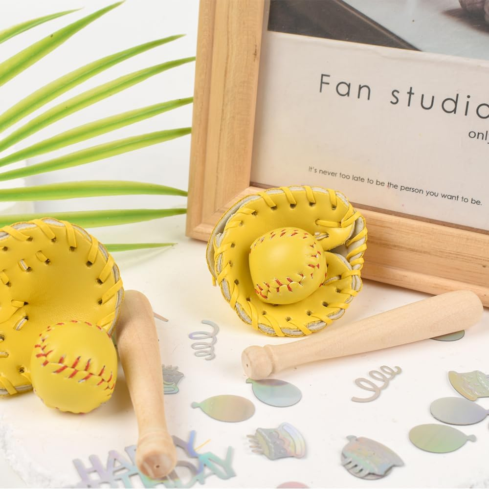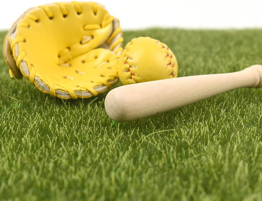 Miniature Baseball Bat Set - 9Pcs Dollhouse Sports Accessories with Glove & Ball