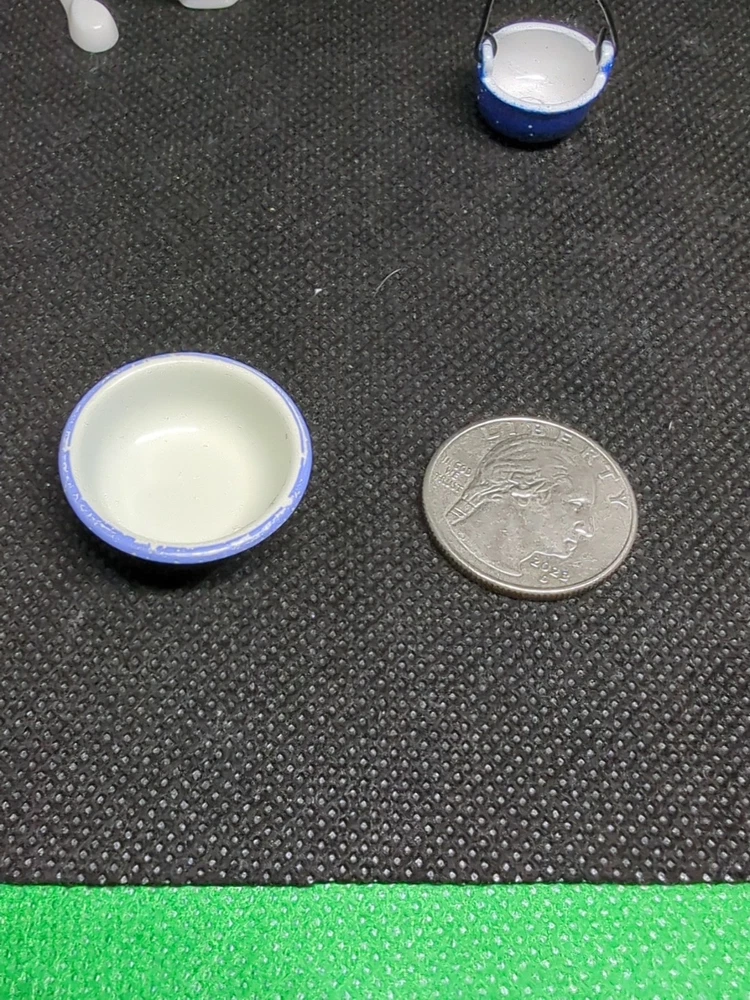 $ 10.56Vintage Miniature Dollhouse 3 Ceramic Kitchen Pottery Blue Speckled Bowls MCM