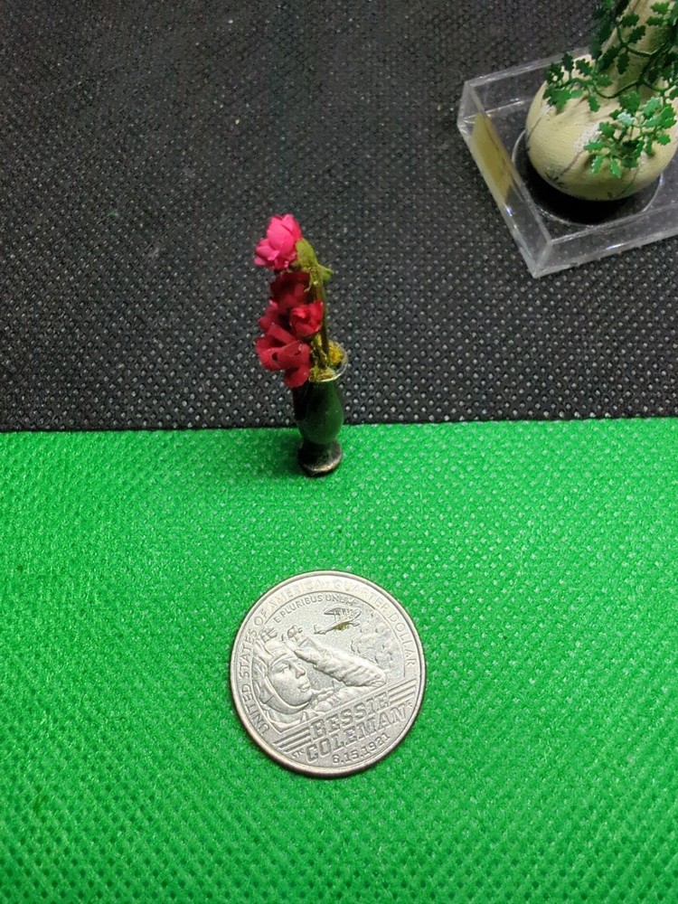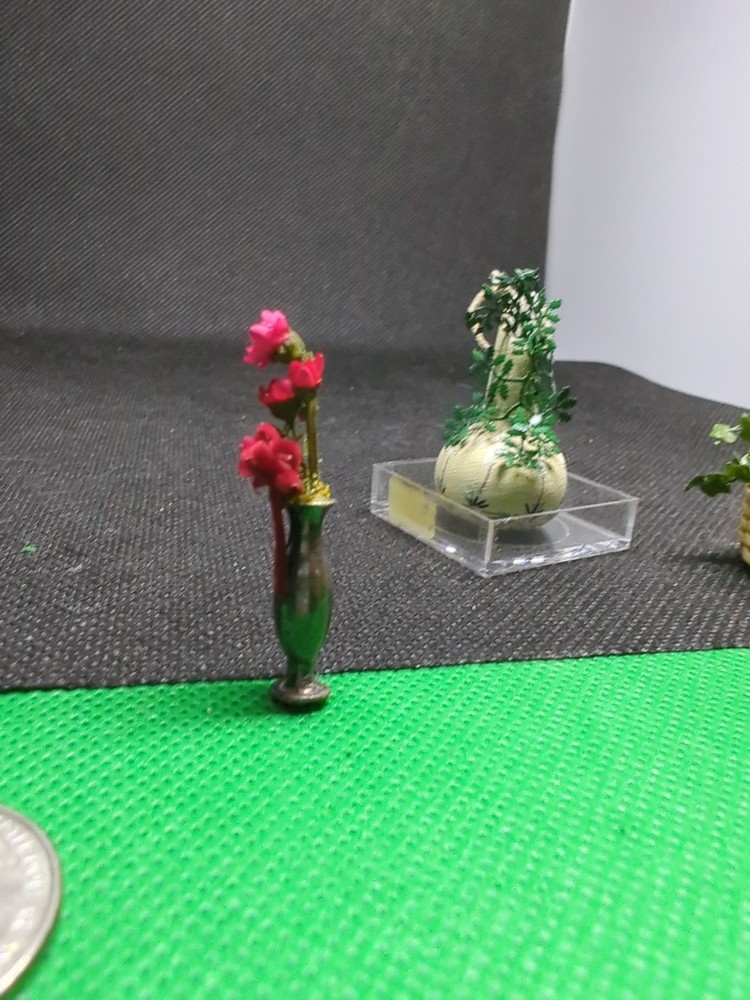 This lot includes 3 miniature dollhouse accessories in the form of plants, specifically flowers. The items are designed to be used in a 1:12 scale miniature dollhouse, adding a realistic touch to the décor. This set is perfect for dollhouse enthusiasts looking to bring a touch of nature into their miniature world. Item 400