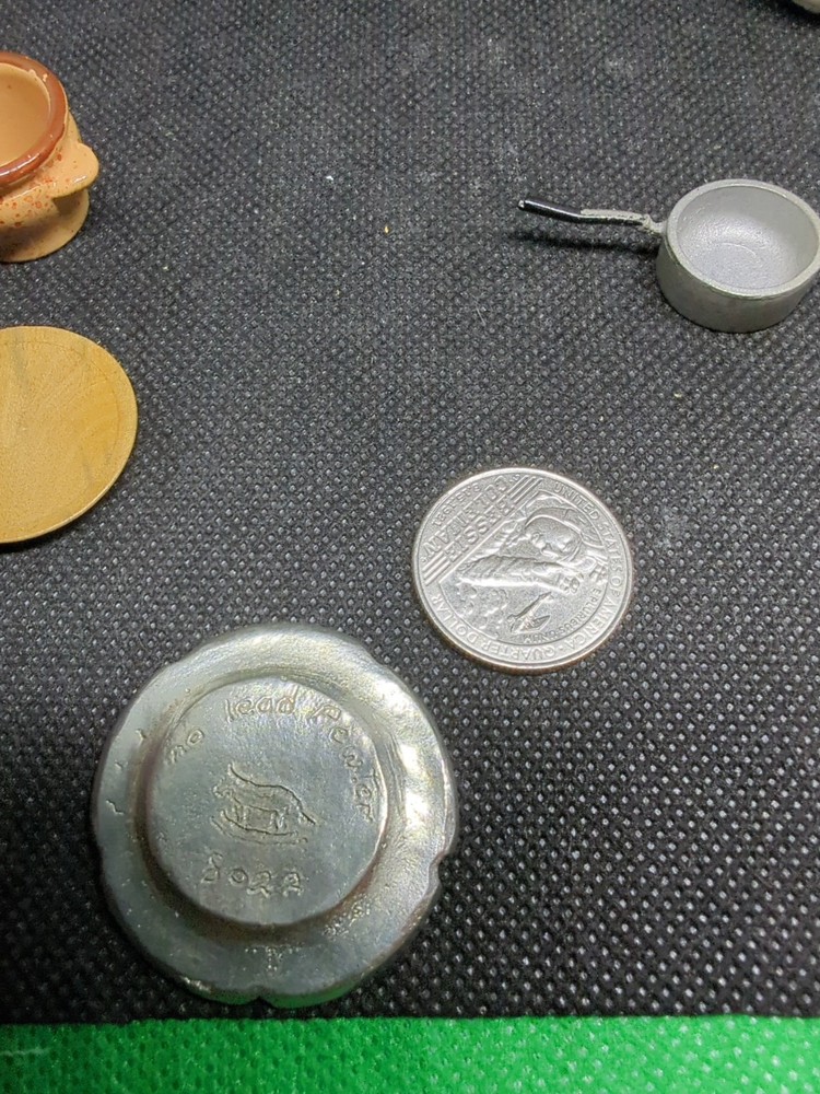 $ 12.1VTG 48 Pc Miniature Copper and Metal Accessories Lot, Dollhouse, Diorama Kitchen