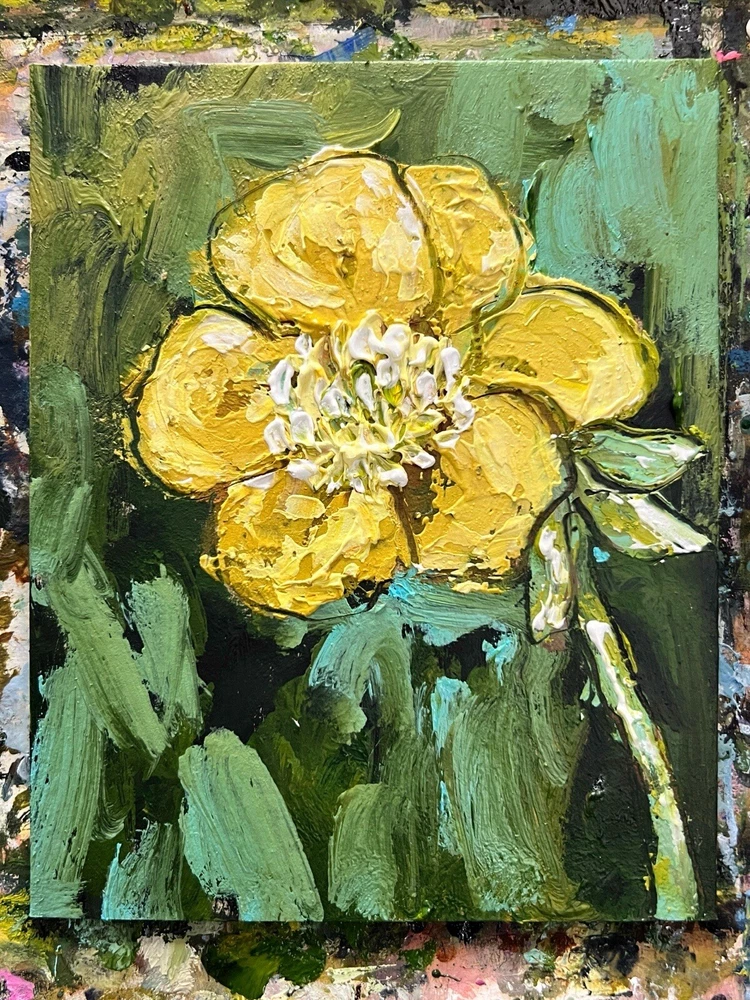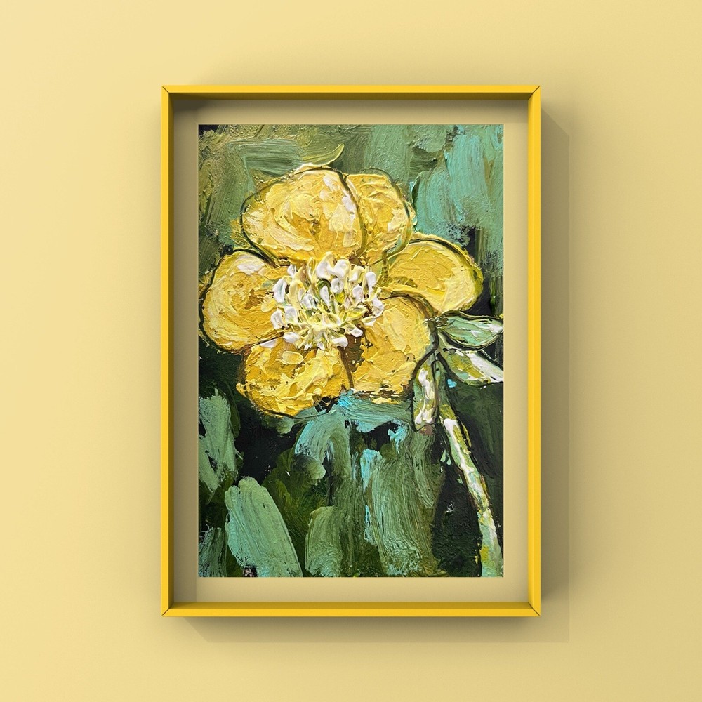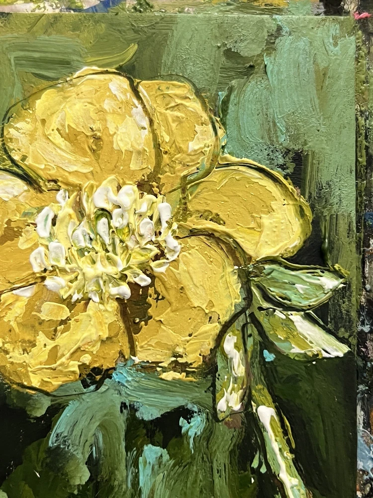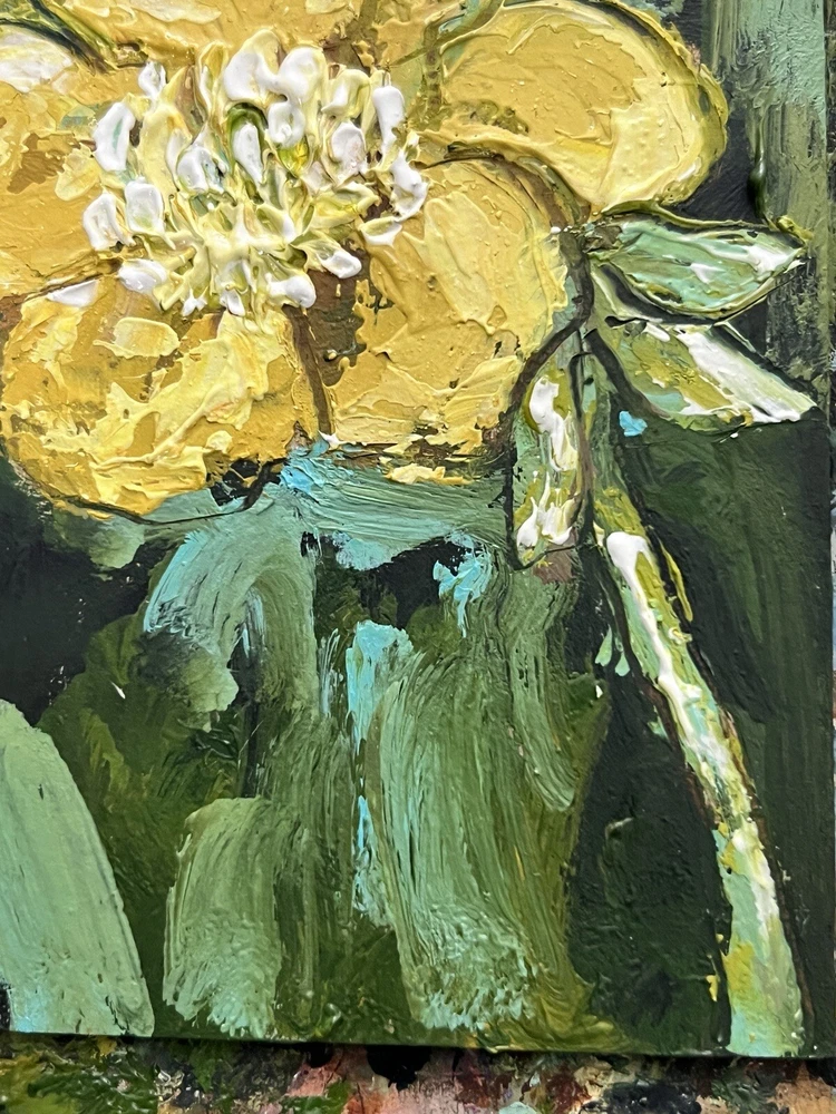 Miniature Impressionist Yellow Floral Oil Painting Original Artwork