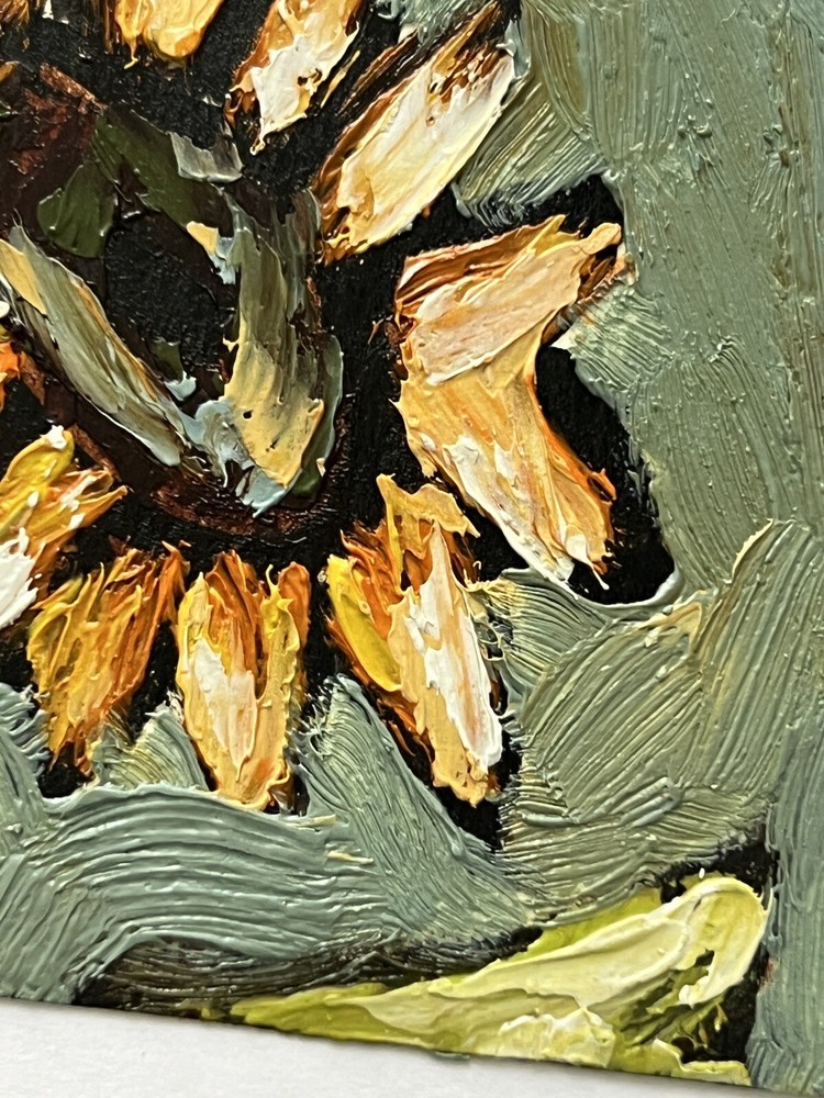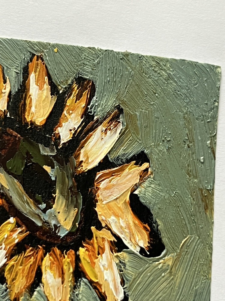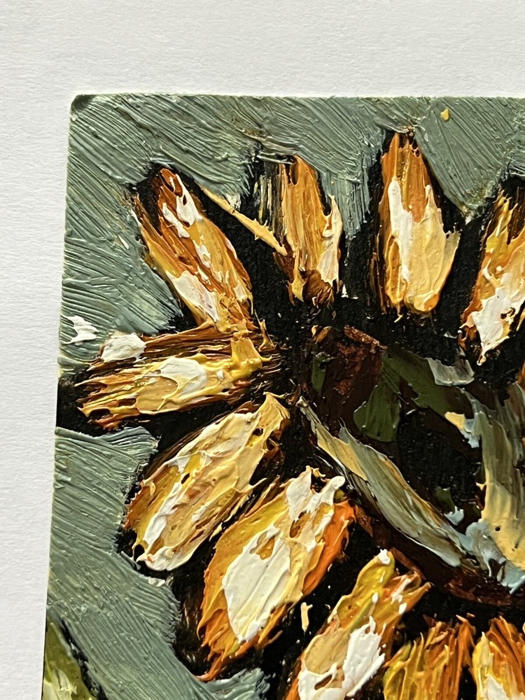 🌿 Add a touch of countryside charm to your cottage decor with this exquisite miniature painting. Featuring vibrant hues of sunflowers, this unique artwork is a perfect gift for any gardening enthusiast. Own a piece of art that captures the essence of nature's beauty in a truly one-of-a-kind masterpiece. 🌷 Original author's oil painting on cardboard. Need a decorative frame. 🌿 Size: 10x10 cm / 4x4 inches . 🌷 Signed from the back. Made in Ukraine , 2023. 🌿 Materials: professional oil paints, cardboard ,. Unframed . Need a decorative frame. 🌷 I use exclusively professional and safe high quality paints for artists in my artworks. 🌿 Each parcel is securely and beautifully packed, so you don't have to worry about its safety. 🌷 Please note that paintings are sent without frames. 🌿 Please note that oil paints take a long time to dry, so for new paintings, the delivery period may increase by 1-2 weeks. ❤️❤️❤️❤️❤️❤️ Dear friends ❤️ I wanted to take a moment to express my deep gratitude for your unwavering support of my art and the importance of supporting Ukrainian artists during these difficult times. Your generosity has allowed me and many other talented individuals to continue pursuing our passion and providing for our families. In times of conflict, it can be easy to overlook the importance of art and culture. However, I believe that it is precisely in these moments that art becomes even more important. It provides a source of hope, inspiration, and beauty that can help us all to endure and persevere. Your contributions have not only helped me personally, but they have also helped to showcase the beauty and creativity of Ukrainian art to the world. Through your support, we are able to preserve and promote the rich cultural heritage of Ukraine, while also providing a source of hope and inspiration for our fellow citizens. I am deeply honored to be a part of such a wonderful community of supporters, and I am grateful for each and every one of you. Thank you for believing in me and my art, and for recognizing the importance of supporting Ukrainian artists during these challenging times. With heartfelt appreciation, Kate ❤️