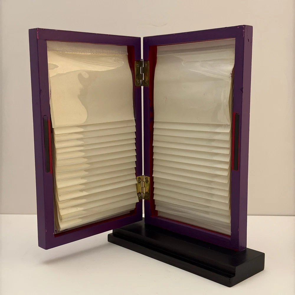 Miniature Purple Door Photo Album – Decorative Display Album, 11 Inches Tall. Preowned in good condition, with some scratches on the edges. The album stands at approximately 11 inches tall and comes in a vibrant purple color. Please refer to the photos for more details. The pictures are of the exact item you will receive. Please check the photos for more details. Please note that this item might have a slight smell of smoke due to storage and the cardboard box used for shipping. We take great care in cleaning and carefully packing the item to minimize any potential odors. Additionally, we prioritize fast shipping to ensure the item arrives quickly and in excellent condition. If you have any concerns, feel free to contact us before purchasing. Thank you for your understanding!