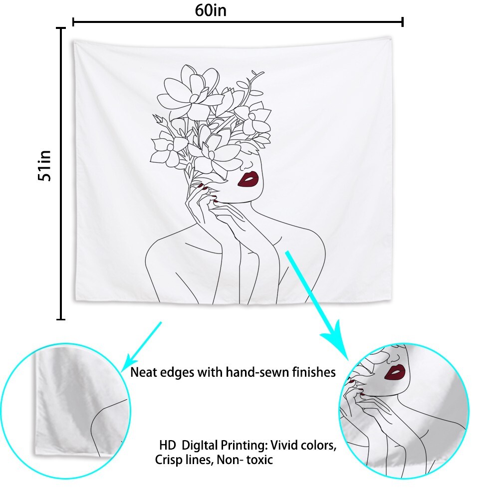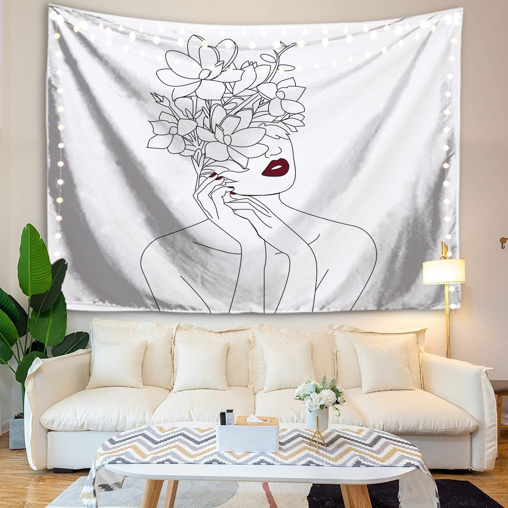 DISCLAIMER: Does not come with lights Open to OFFERS Product Dimensions : 51x60inches AMAZING MATERIAL: This abstract tapestry is made from high-quality polyester fabric, which is soft, durable, skin-friendly, lightweight and easy to hang or pack away for your indoor or outdoor use. Suitable for any season and occasion. ELEGANT DESIGN: This minimalistic aesthetic tapestry is designed with advanced HD print. Fading will not be an issue. Featuring vivid colors, crisp lines, and delicate hemming all around, while bringing your room together with vibrant art and colors. MULTIPLE USAGES: This fancy line tapestry is perfect for wall hangings, beach throws, picnic blankets, porch hangings, table cloths, bed spreads, sofa covers, dorm decorations, ceiling decor, window curtain. EASY USE & CARE: You can hang this floral women tapestry with decorative tacks or push pins easily. Dry clean or gentle hand wash in cold water. You can also easily iron it at a low temperature. PERFECT GIFT: This room wall tapestry is the perfect gift for anyone. With advance printing, this cloud tapestry will last-long and continue to be vibrant for countless years. Package with care and love Shipping USPS Advantage