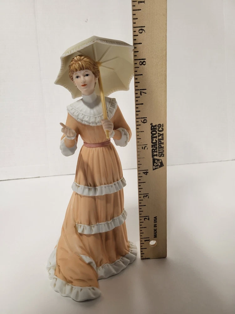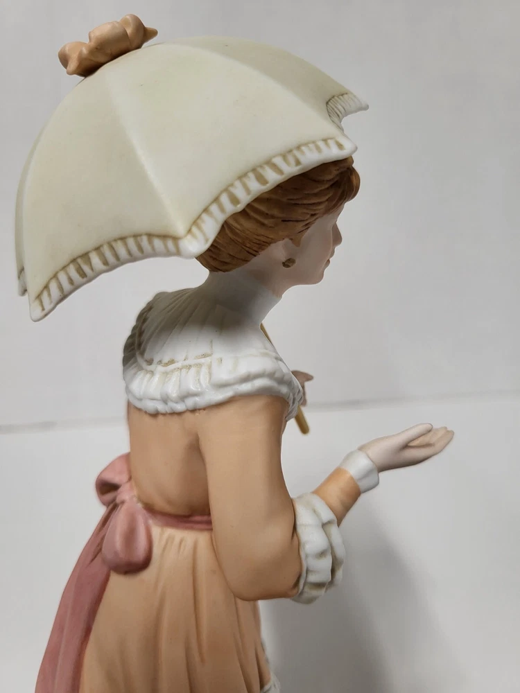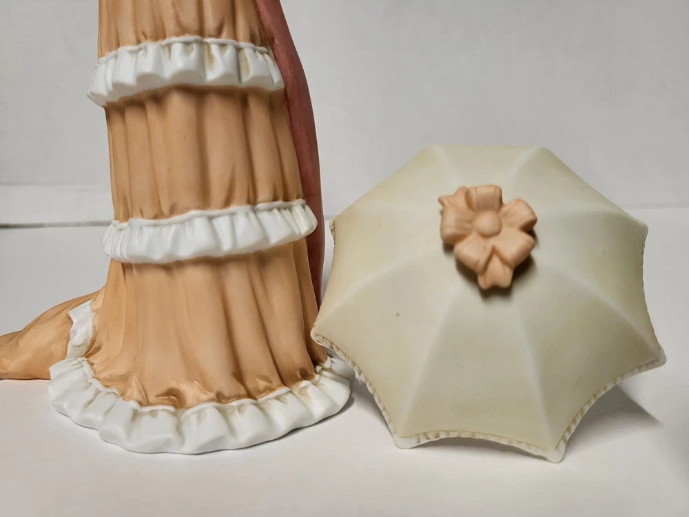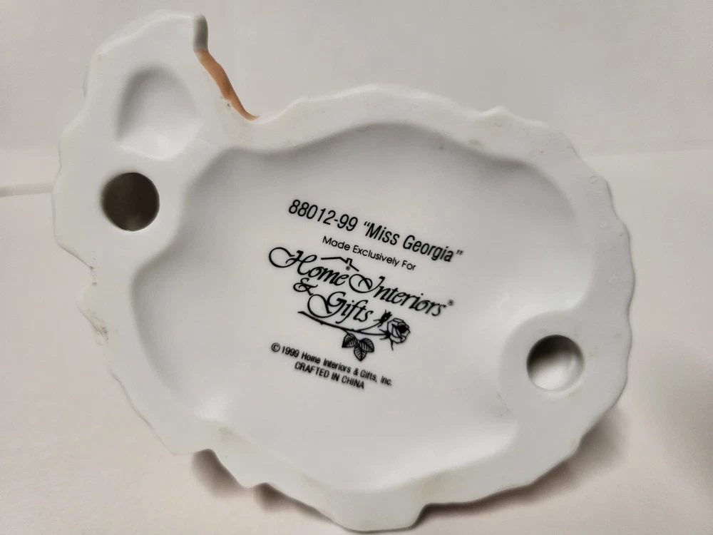 MINT CONDITION Vintage Home Interiors Porcelain Figurine Miss Georgia With Umbrella. 8.75" ht, 4" Length & Width, 15 oz wt. Please see Matching Figurines Miss Violet also MINTCondition & #1431 also in my listings.