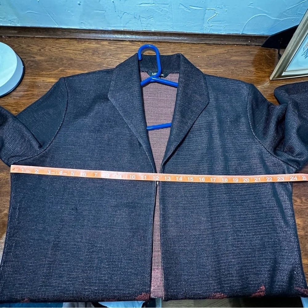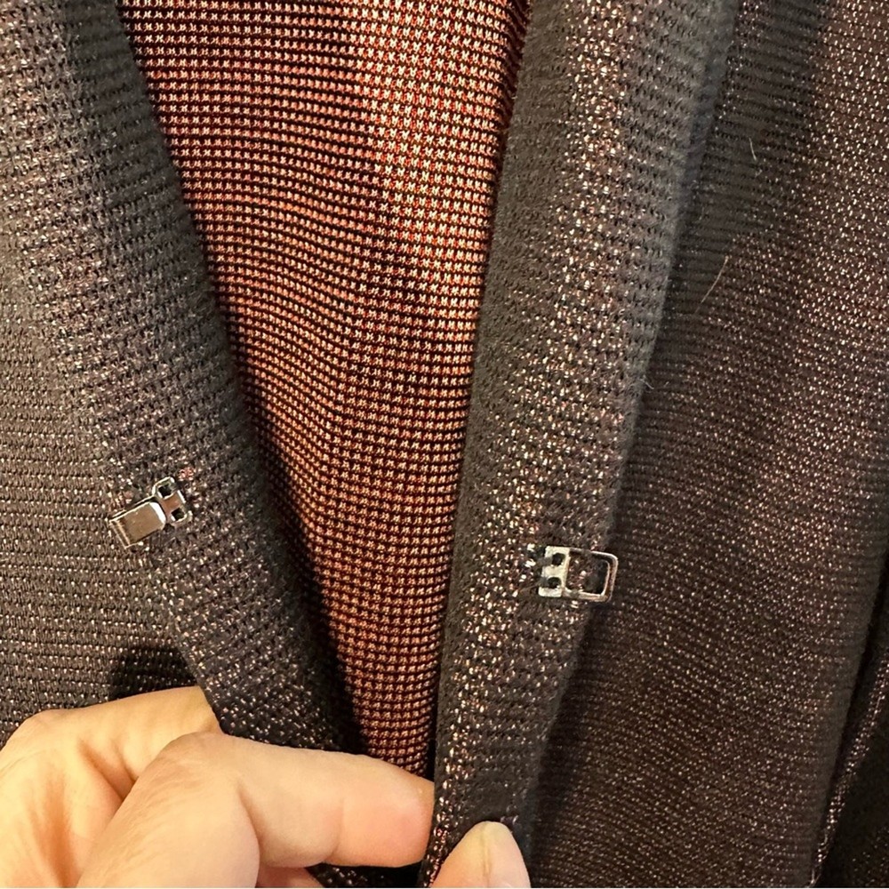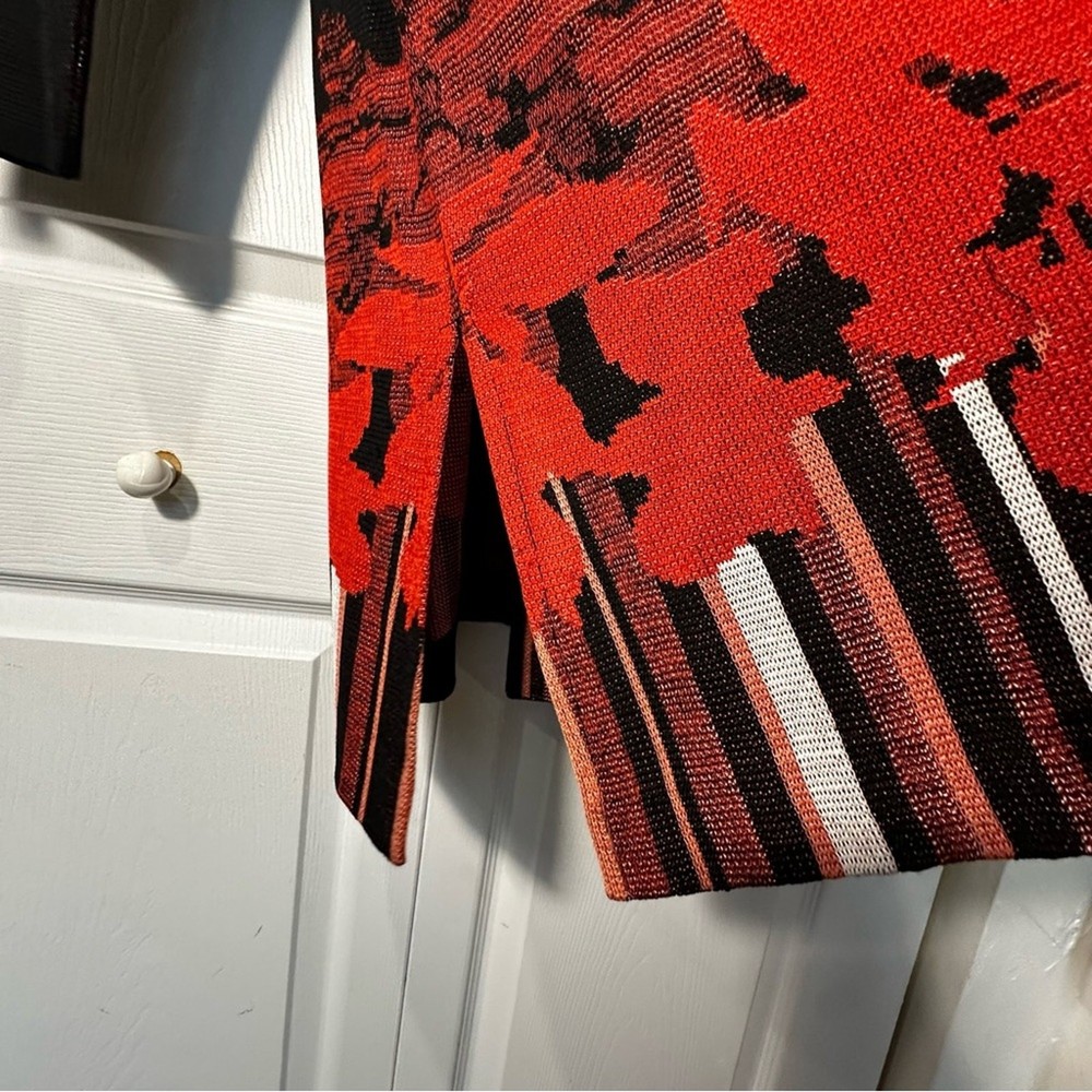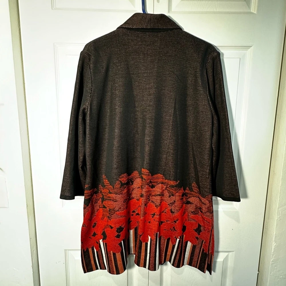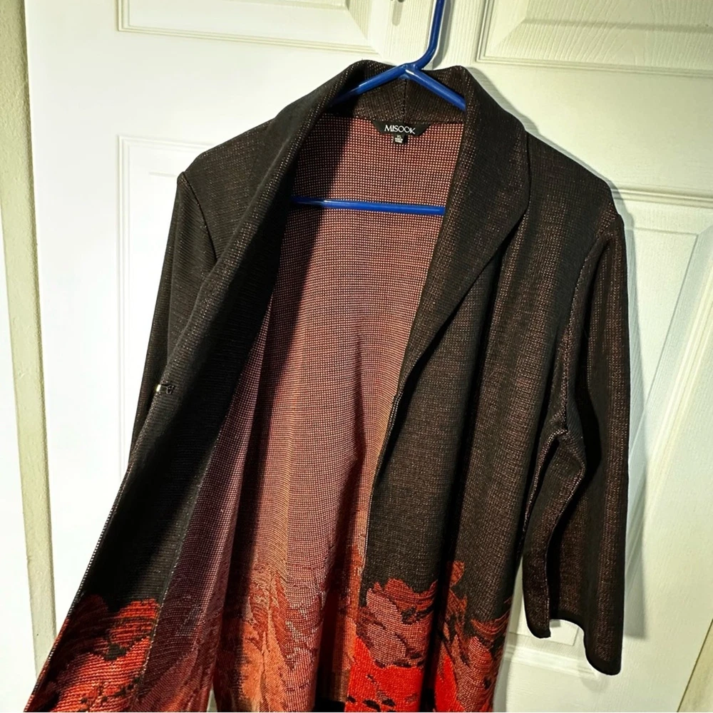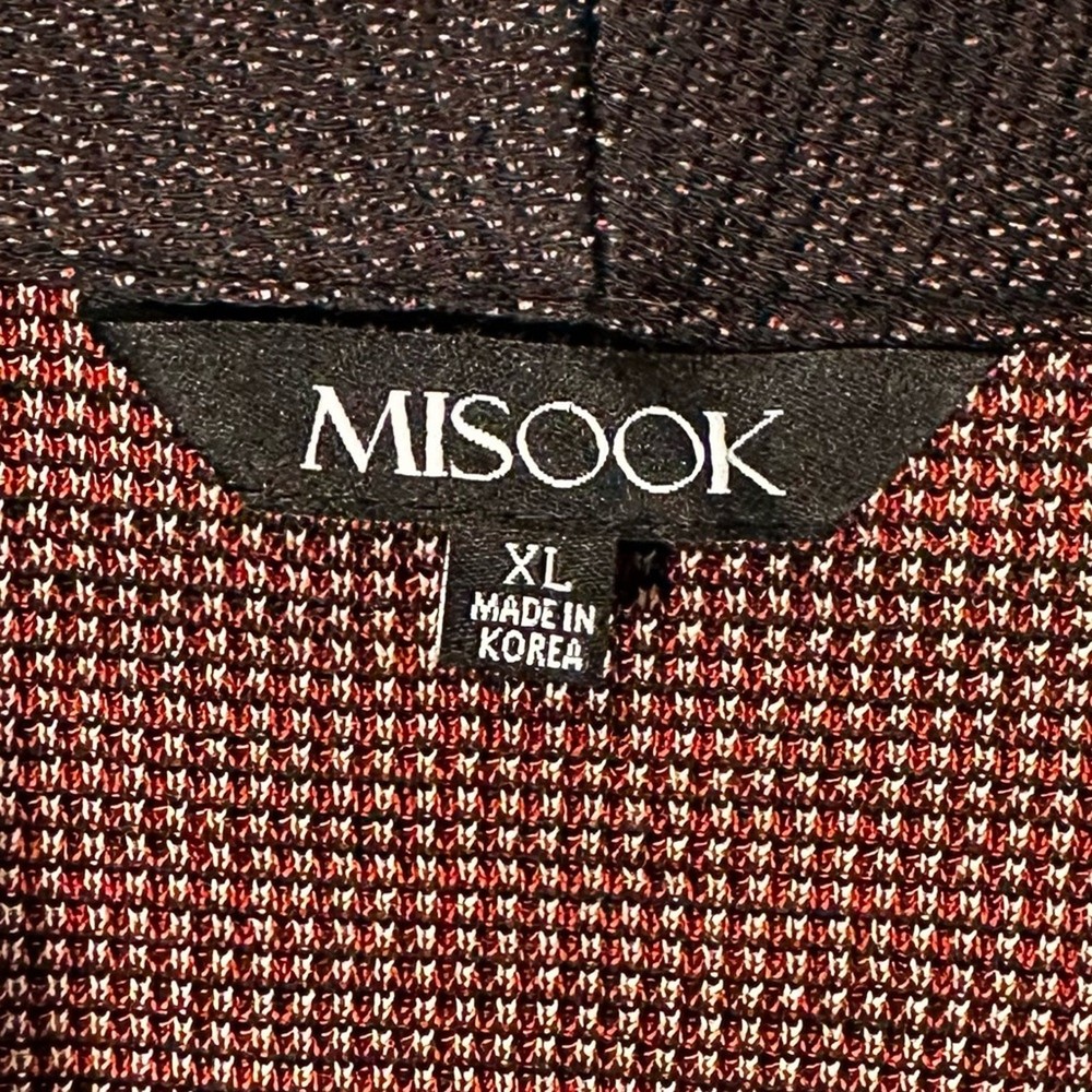 Brand: Misook Item Type: Knit Jacket / Open Front Blazer Size: Women's XL (Extra Large) Color: Red, Brown, Orange, and Tan/Neutral Material: 90% Acrylic, 10% Polyester (signature Misook knit) Condition: Excellent pre-owned condition; well-maintained. Features: Travel-friendly, wrinkle-resistant fabric; side vents; structural collar; long sleeves. Quiet Luxury, Corporate Core, Maximalist Print, Bold Red, Textural Knit, Power Dressing, Sophisticated Punk, Graphic Minimalist, Travel Luxe, Easy Care, Artsy, Structured Knit, Timeless, Modern Classic, Dark Academia, Layering Piece, Bold Shoulders, Transitional, Heritage Style, Statement Topper.
