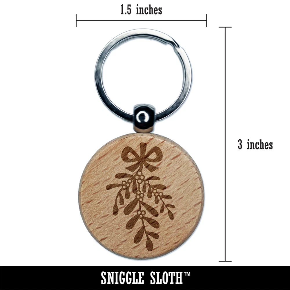 Mistletoe Merry Christmas Xmas Engraved Wood Round Keychain Tag Charm